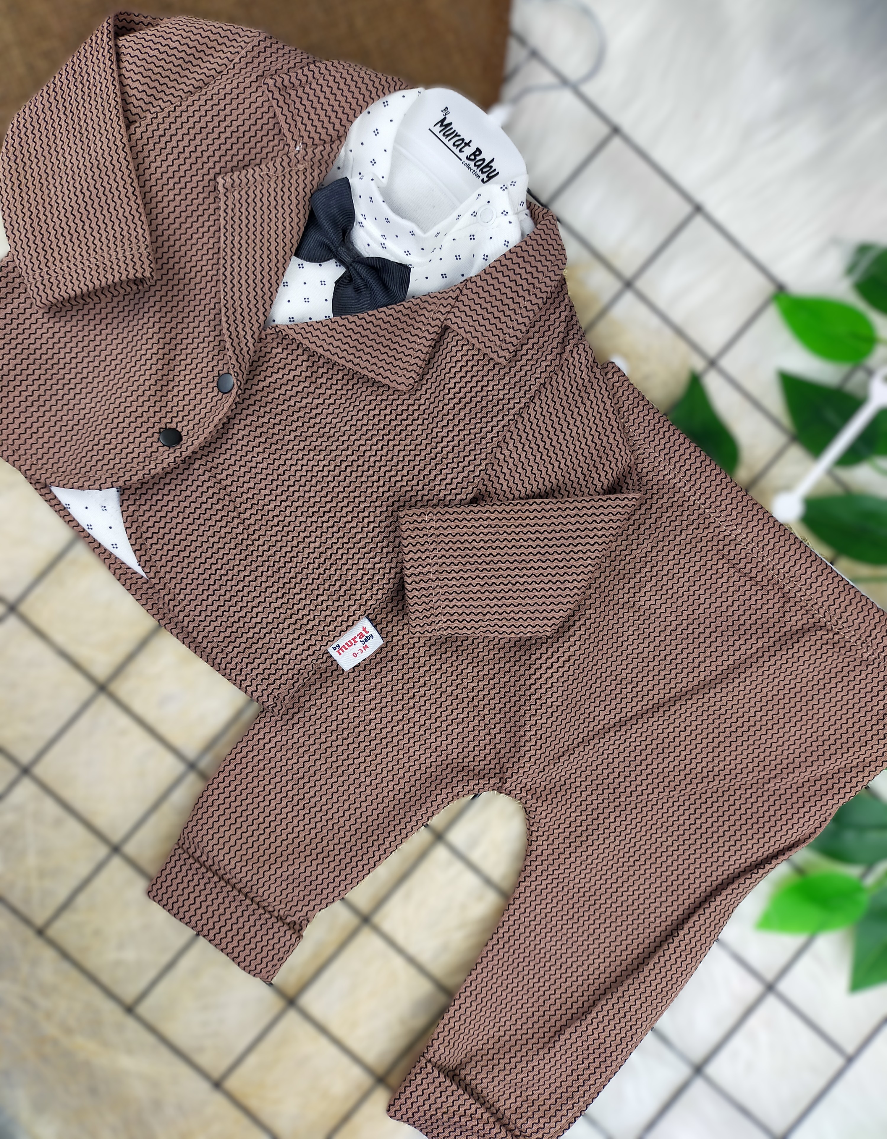 Bebekler için tasarlanan bu takım, sevimli ve şık detaylarıyla dikkat çeker. Papyon detayı, takımın şıklığını artırırken, tamamen yumuşak ve esnek oluşu sayesinde bebeğinizin rahat hareket etmesine olanak tanır. Gömlek ve pantolon detayları, bebeğinizin özel günlerde bile konfor içinde olmasını sağlayacak şekilde düşünülmüştür.