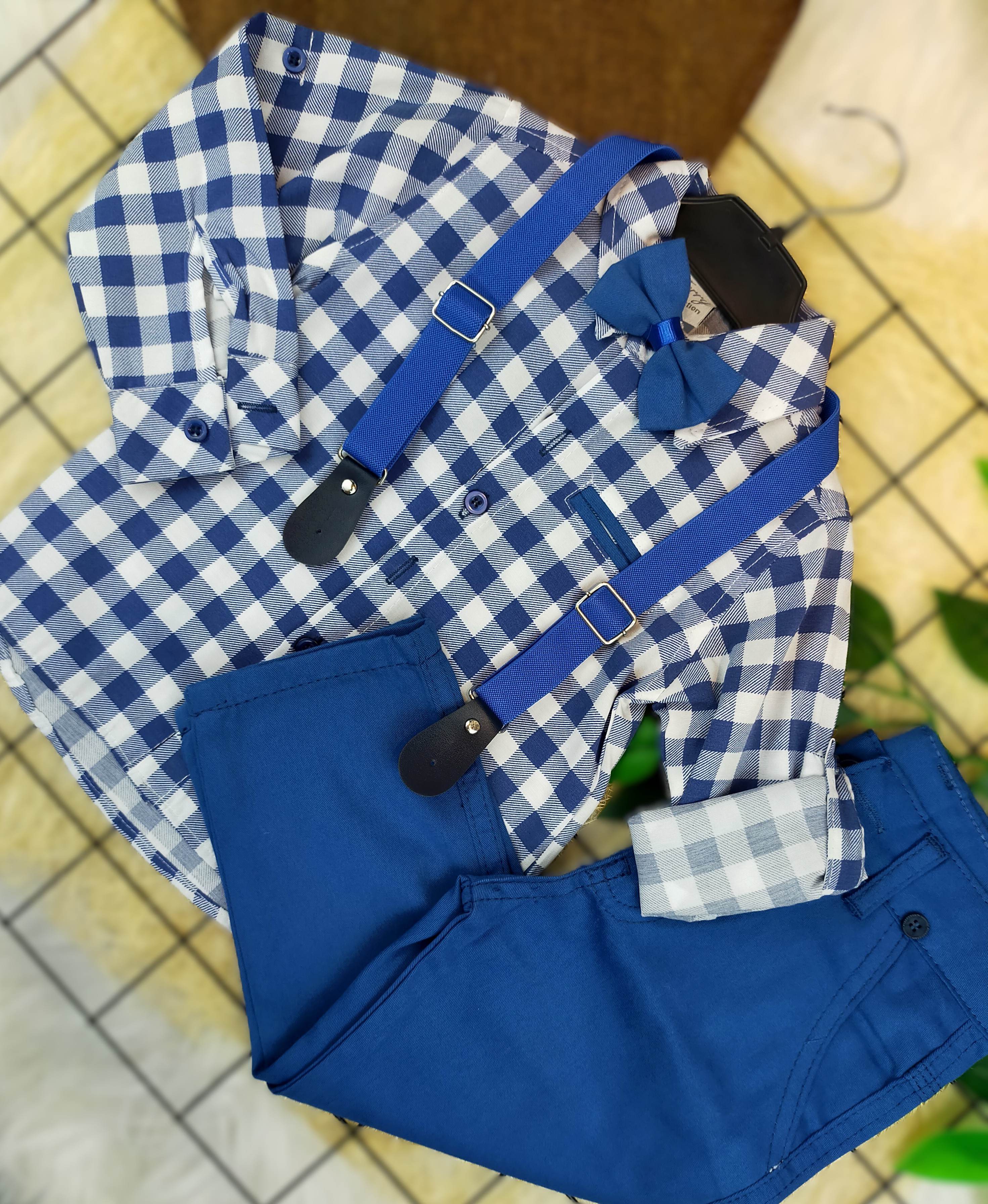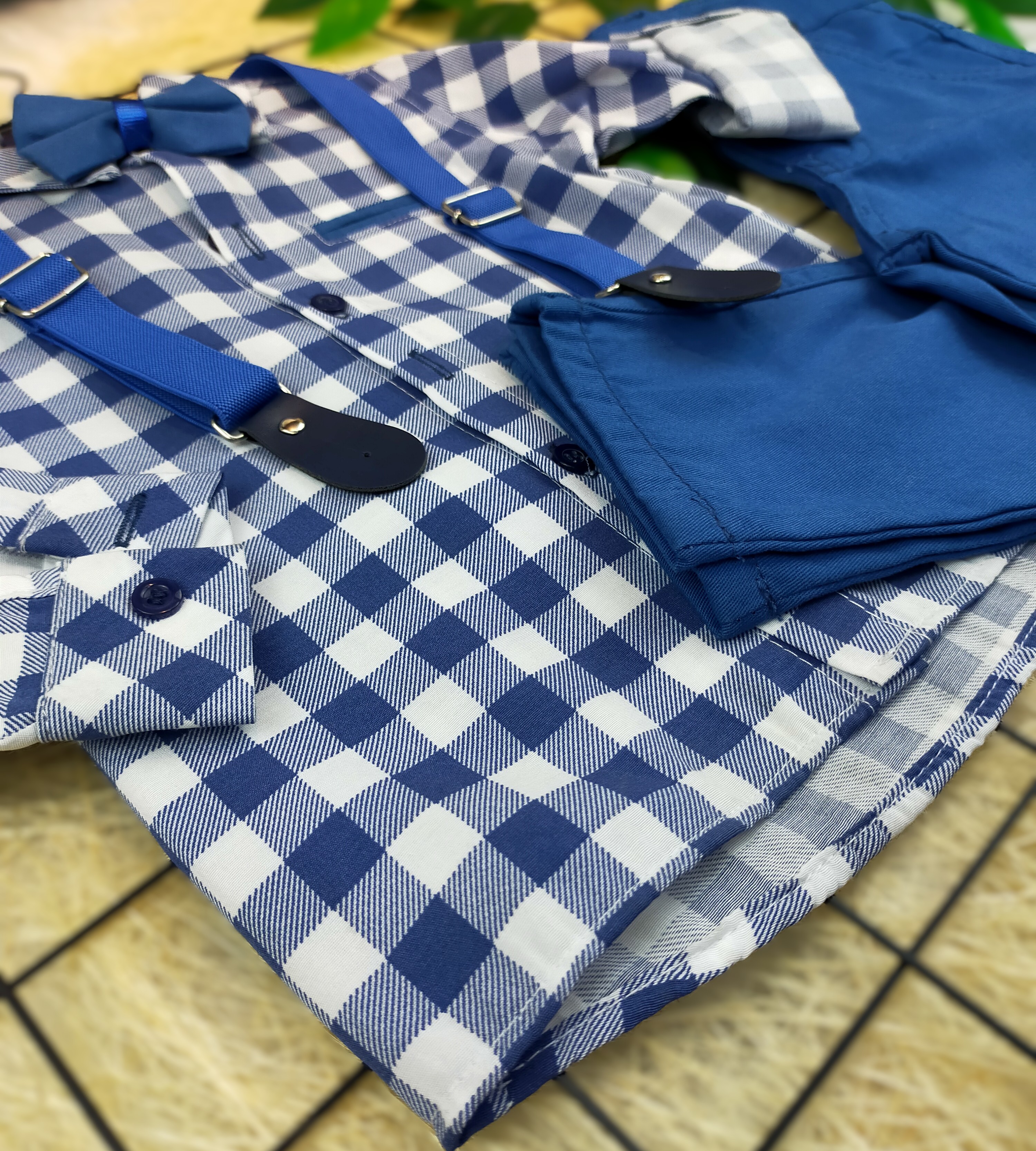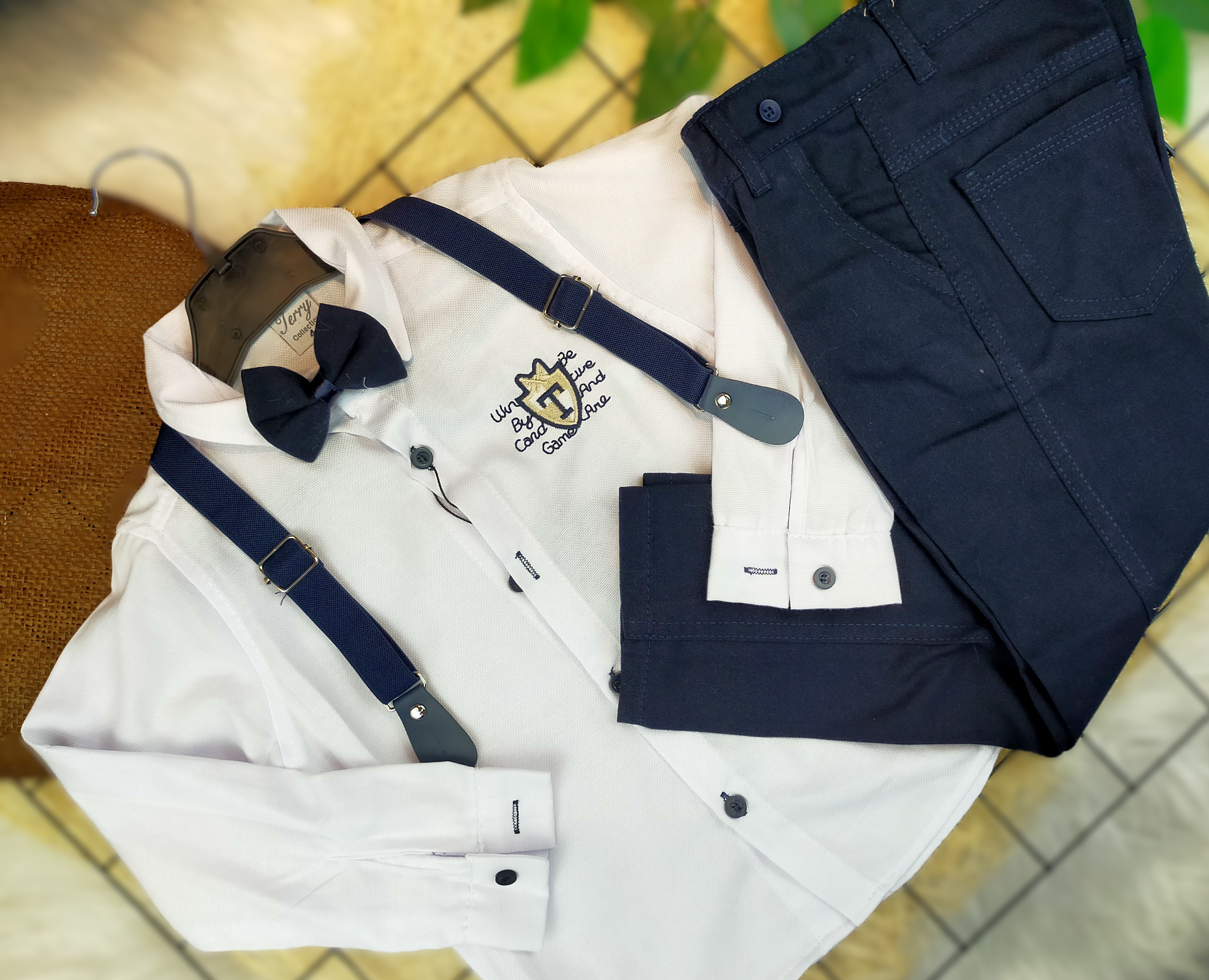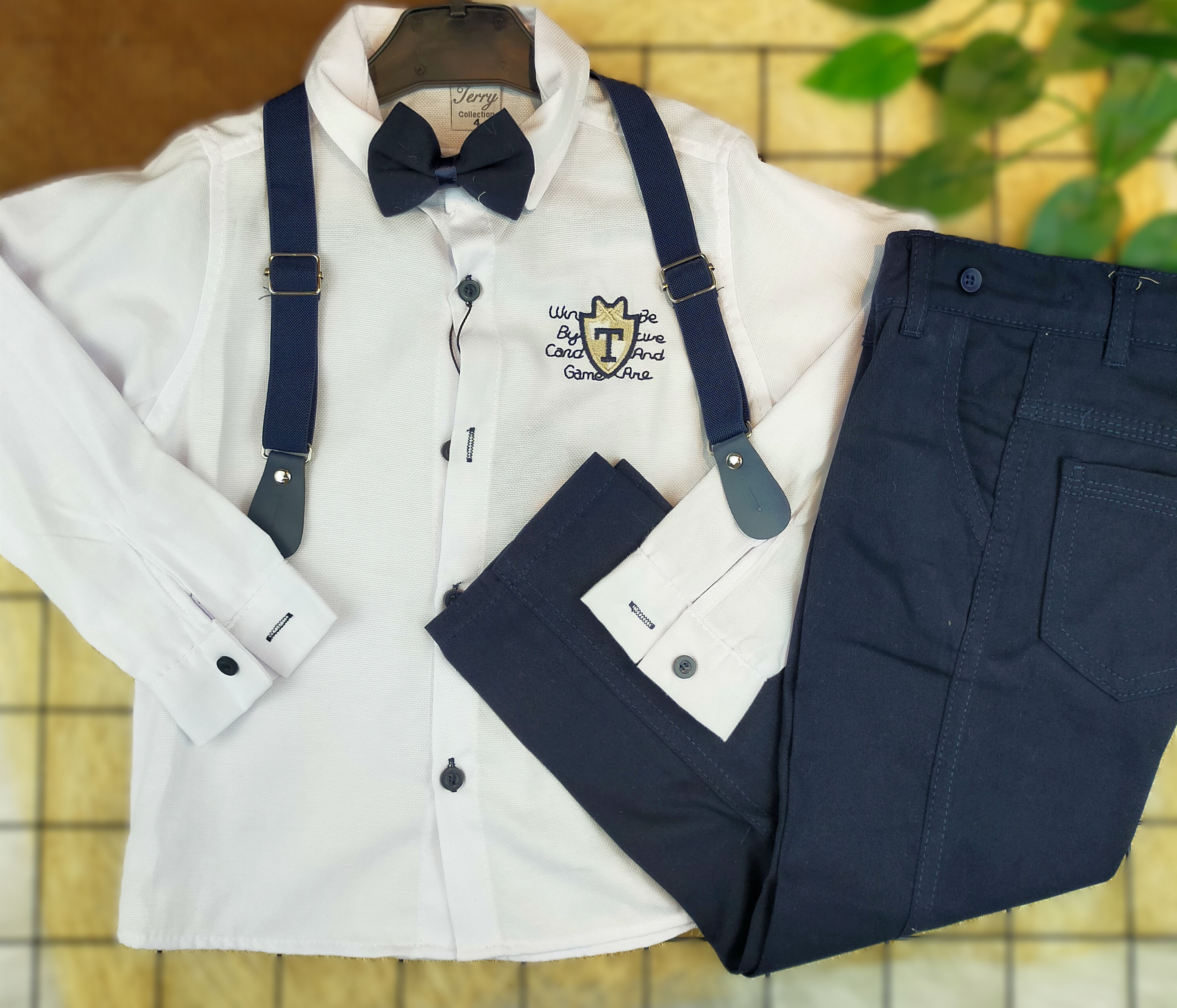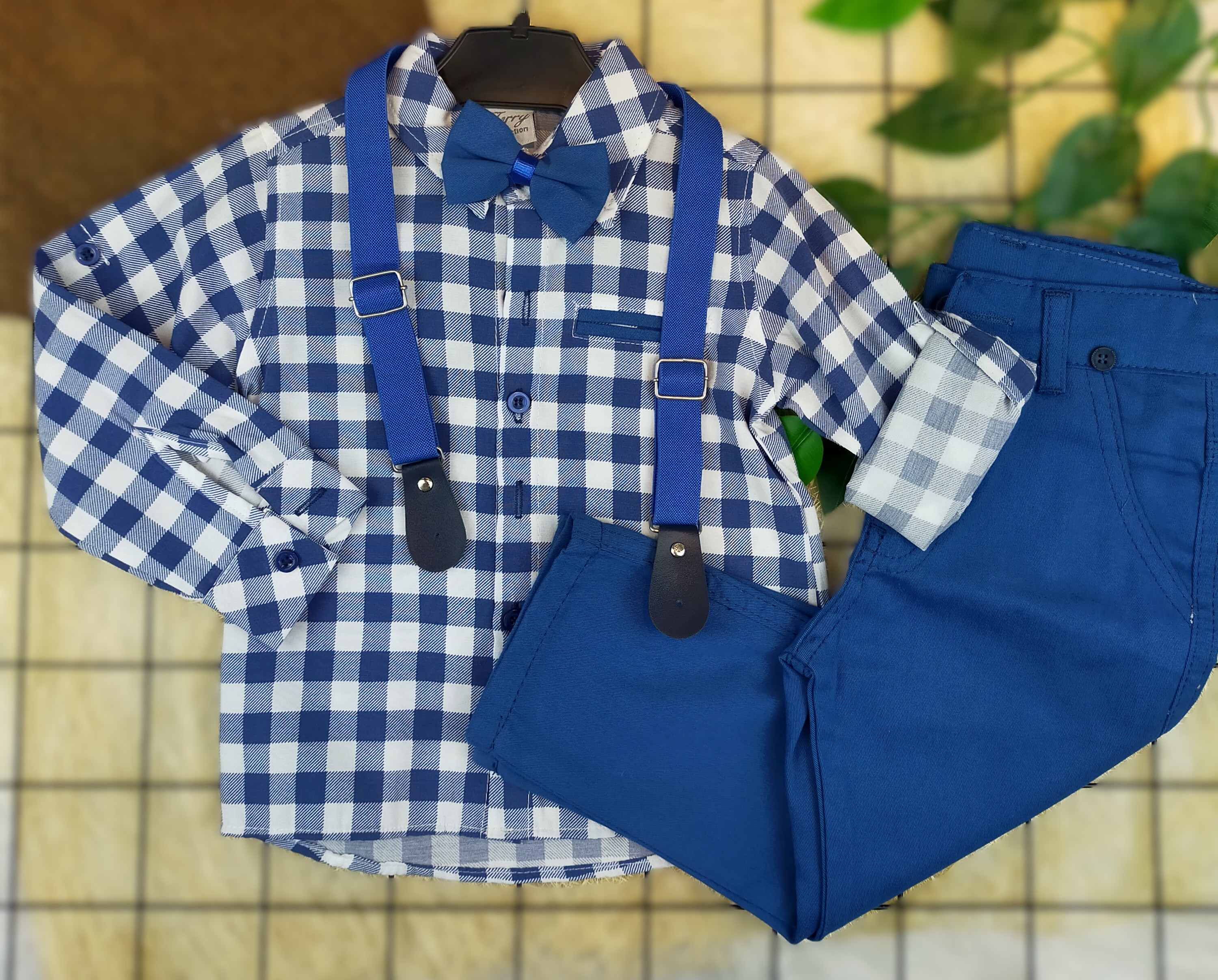 1 - 4 Yaş Arası Gömlek, Keten Pantolon, Papyon ve Askılıklı Erkek Çocuk Takım