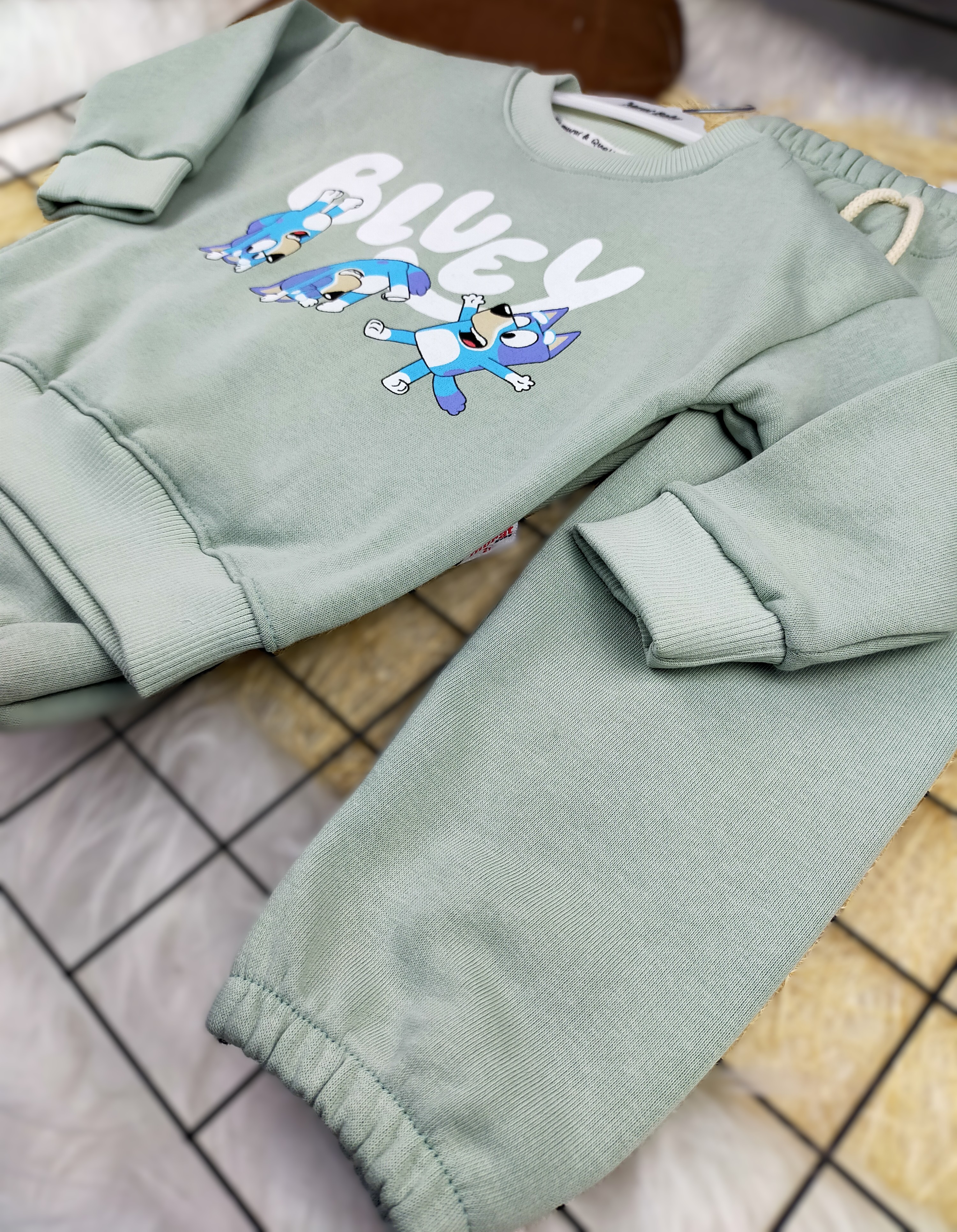 2 - 5 Yaş Arası Bluey Desenli Üçiplik Şardonlu Kışlık Takım