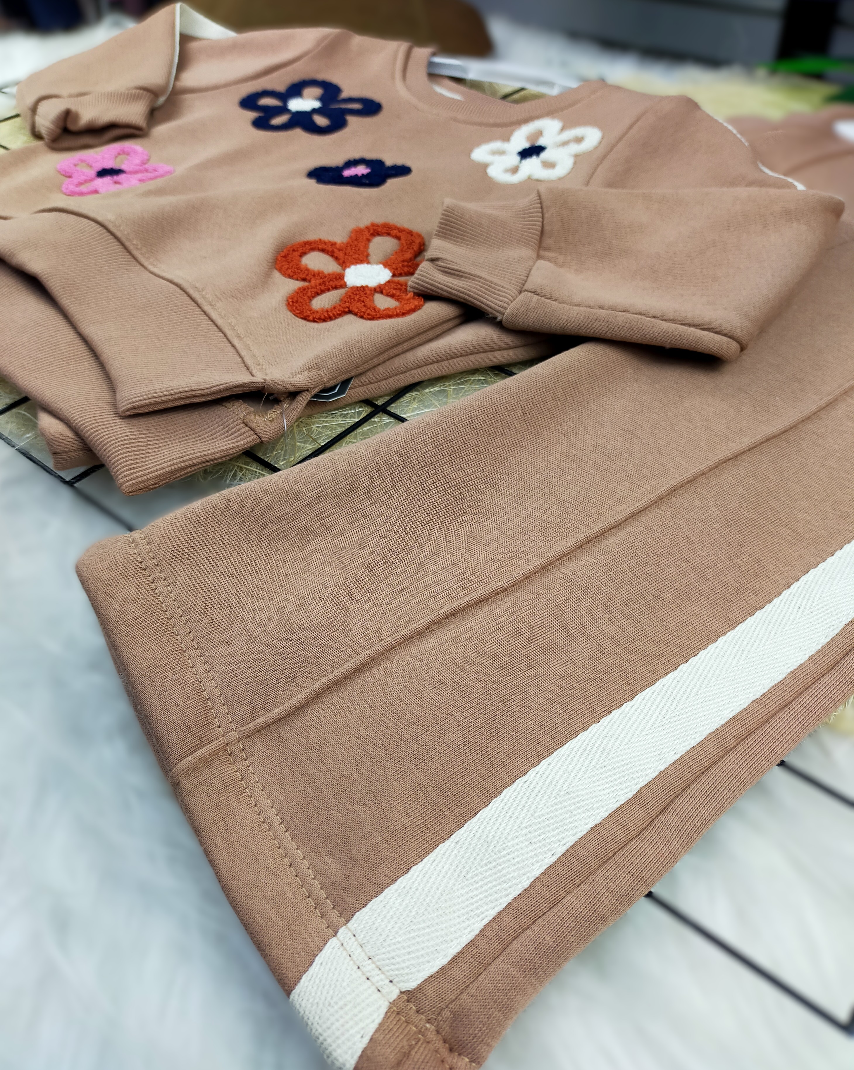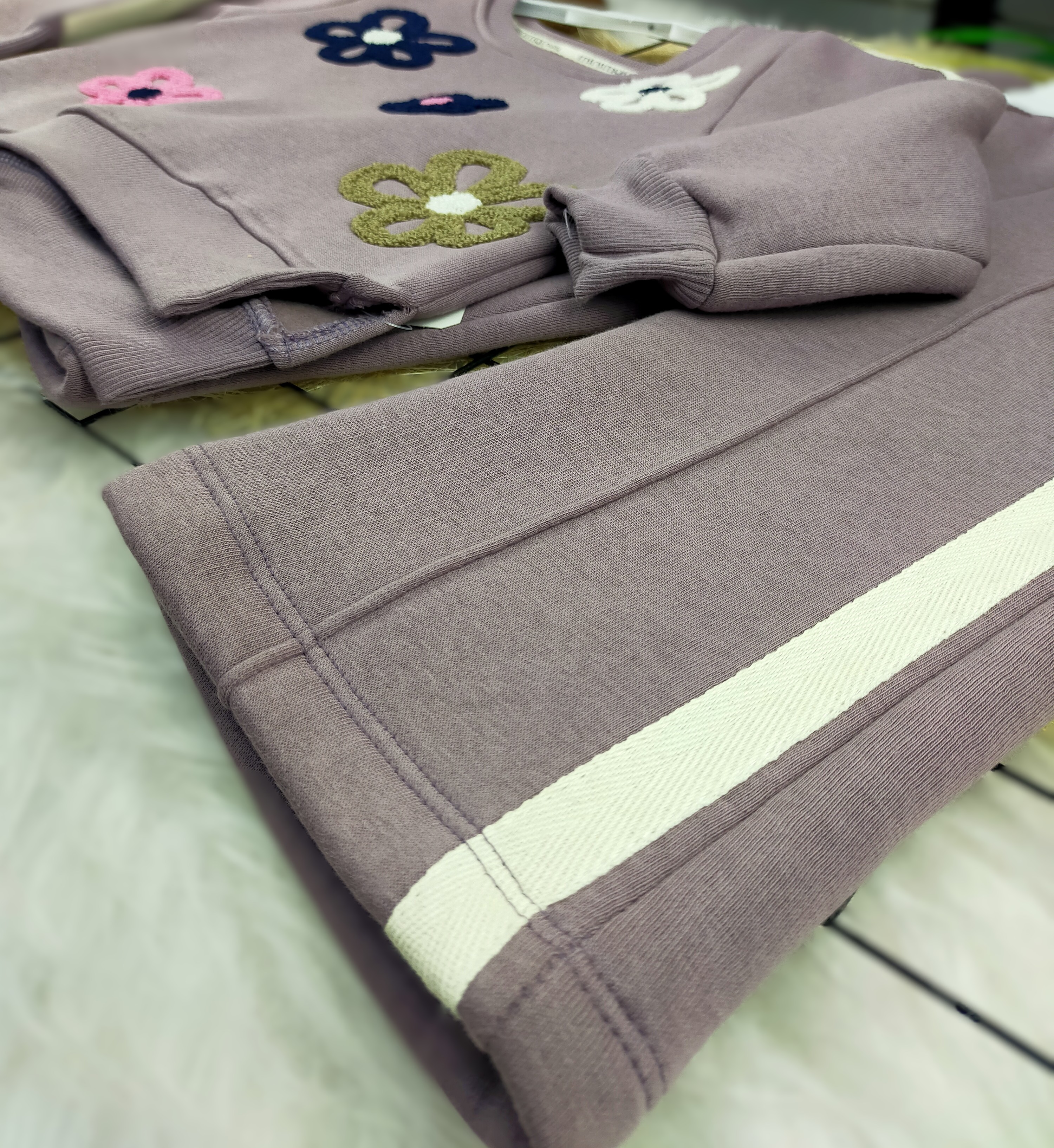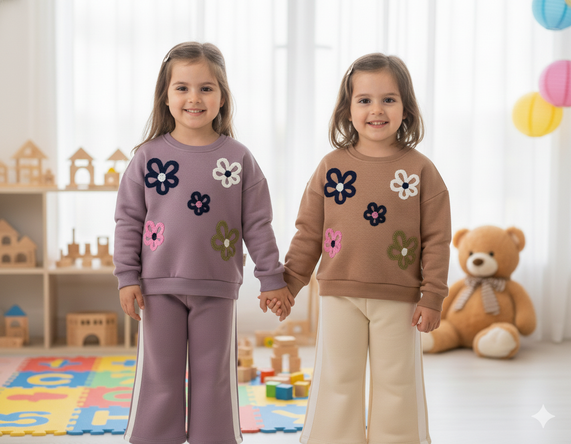 Üç İplik Şardonlu Bol Paça Kız Çocuk Takım