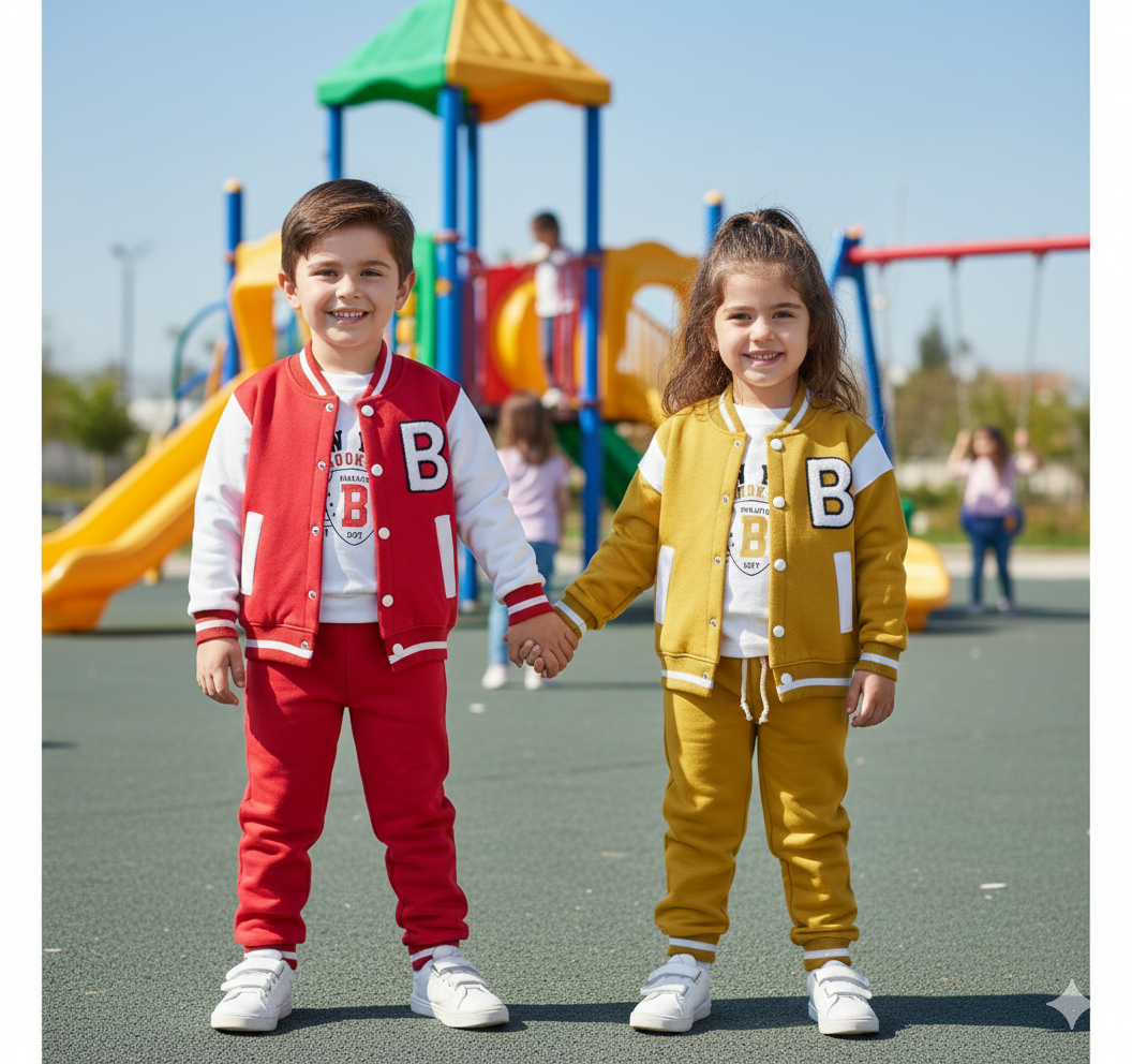 Çocuk modasında şıklık ve konforu bir araya getiren 2 - 5 yaş arası kolej ceket, sweat ve eşofmanlı kışlık takım, miniklerin soğuk havalarda hem sıcak kalmasını hem de rahat etmesini sağlıyor. Bu şık üçlü set, çocukların enerjisini yansıtan dinamik tasarımlarıyla öne çıkıyor.