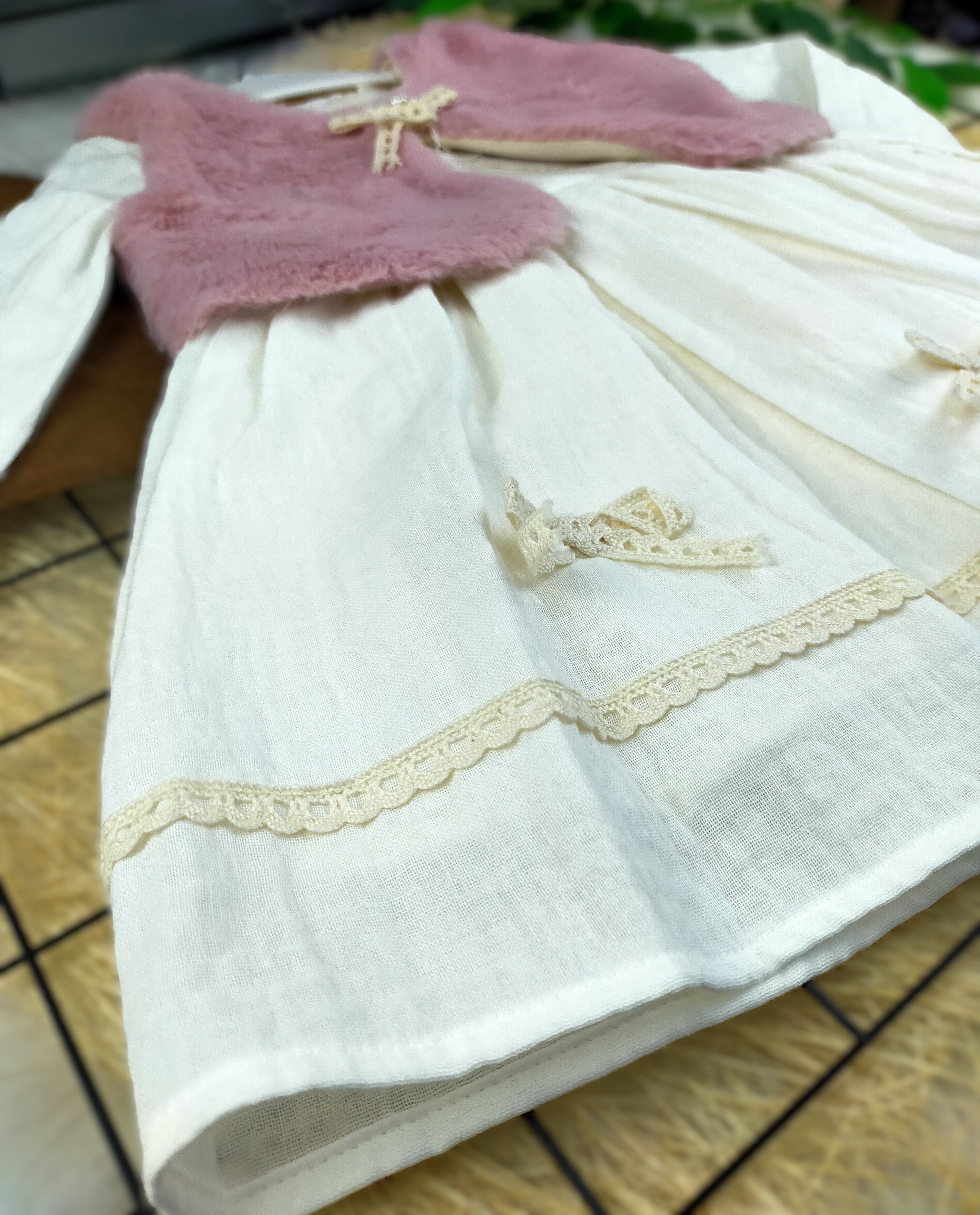 2 - 5 Yaş Arası Peluş Yelekli Müslin Elbise