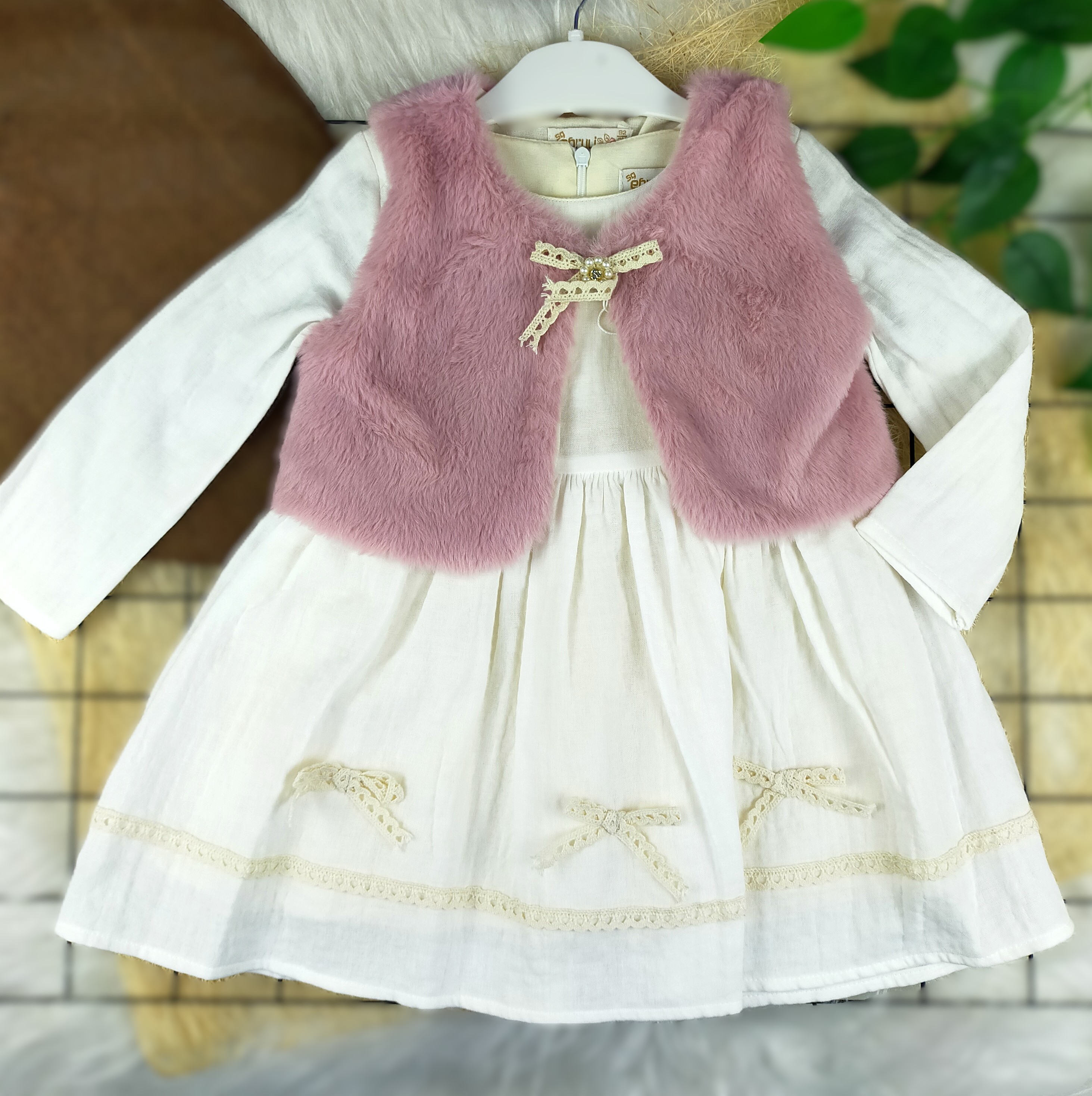 Çocuğunuz için en güzel elbiselere sahip olmak hiç bu kadar kolay olmamıştı! 2 - 5 yaş arası peluş yelekli müslin elbise siparişinizi vererek modanın keyfini çıkarın. Şıklığı ve rahatlığı bir arada sunan bu elbise, hem çocuklarınıza hem de sizlere mutlu anlar yaşatacaktır.