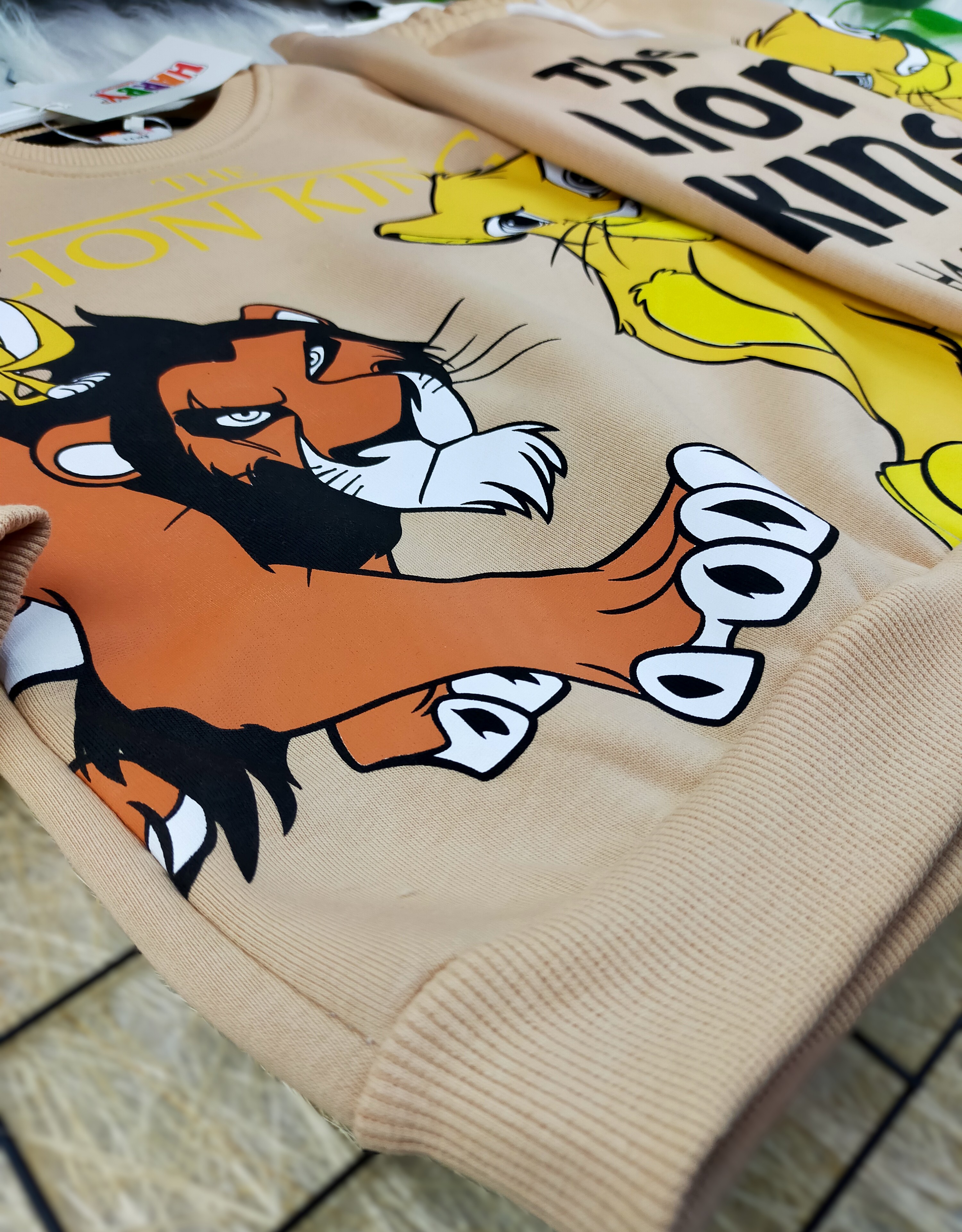 Çocukların rahatlıkla hareket edebilmeleri ve şıklıklarını ortaya koymaları için tasarlanan 3 - 10 yaş arası Aslan Kral desenli üçiplik şardonlu oversize kesim erkek çocuk takımları, hem stil hem de konfor arayan küçük beylerin favorisi olmaya aday. Bu özel tasarım, popüler Aslan Kral karakteri ile çocukların hayal dünyasını süsleyecek ve onların gülümsemesini sağlayacak.