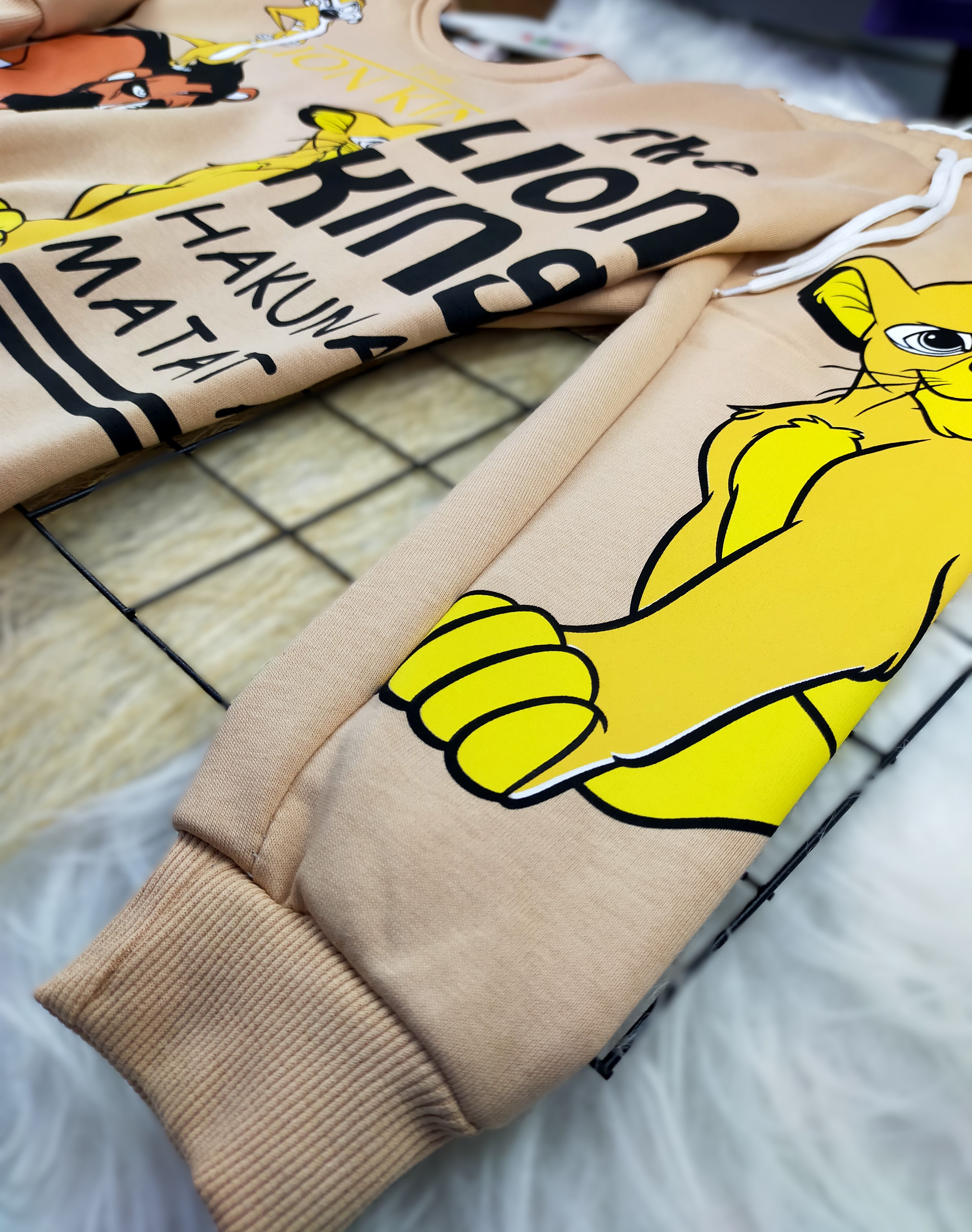 3 - 10 Yaş Arası Aslan Kral Desenli Üçiplik Şardonlu Oversize Kesim Erkek Çocuk Takımları