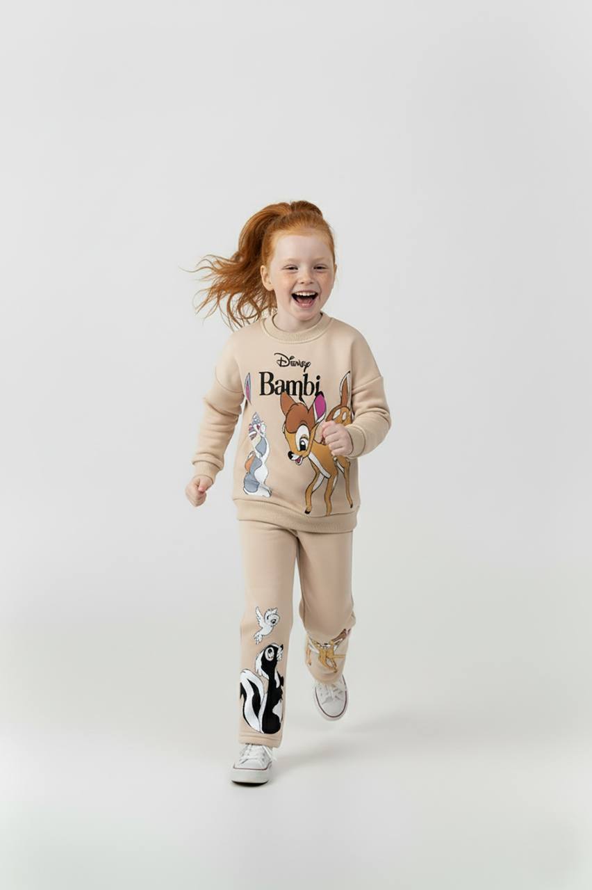 Modanın ve konforun buluştuğu nokta: 3 - 10 yaş arasındaki kız çocuklarına özel Bambi desenli üçiplik şardonlu oversize kesim takımlar! Şirin Bambi baskısı ile tasarlanan bu takımlar, minik prenseslerin hem rahatça hareket etmesini sağlarken hem de stil sahibi görünmelerine yardımcı olur.