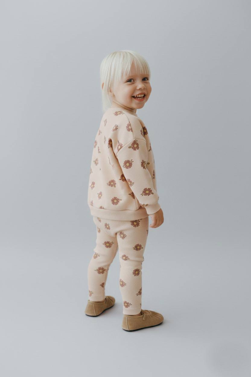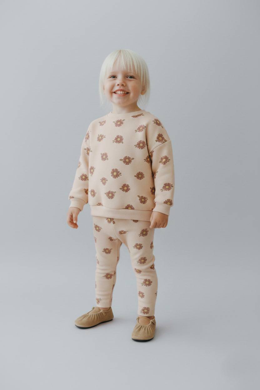 Renkli ve neşeli tasarımıyla 3 - 10 yaş arası kız çocuklarının vazgeçilmezi olacak çiçek desenli üçiplik şardonlu oversize kesim takımları, hem konforu hem de şıklığı bir arada sunuyor. Bu özel koleksiyon, küçüklerin enerjilerine ve tarzlarına uygun olarak özenle hazırlanmıştır.