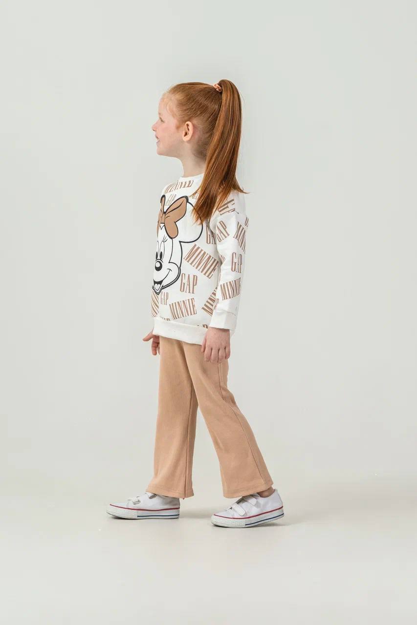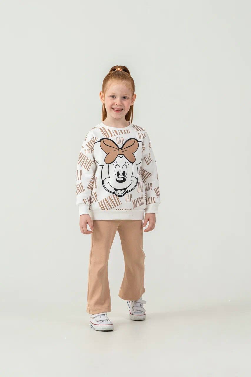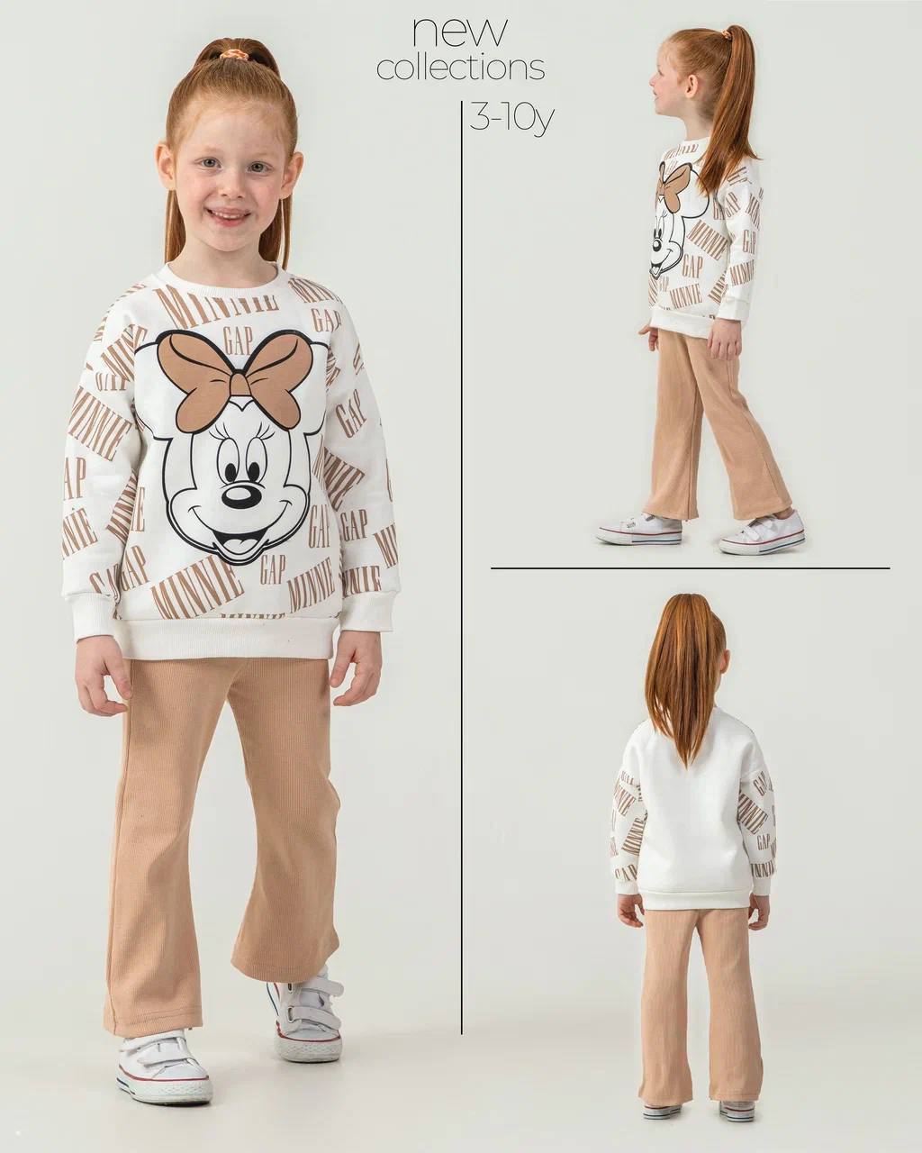 3 - 10 Yaş Arası Minnie Mouse Desenli Üçiplik Şardonlu Oversize Kesim Kız Çocuk Takımları