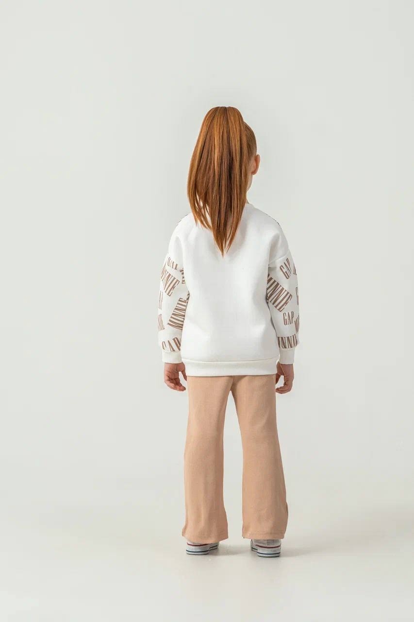 Minnie Mouse Desenli Üçiplik Şardonlu Oversize Kesim Kız Çocuk Takımları