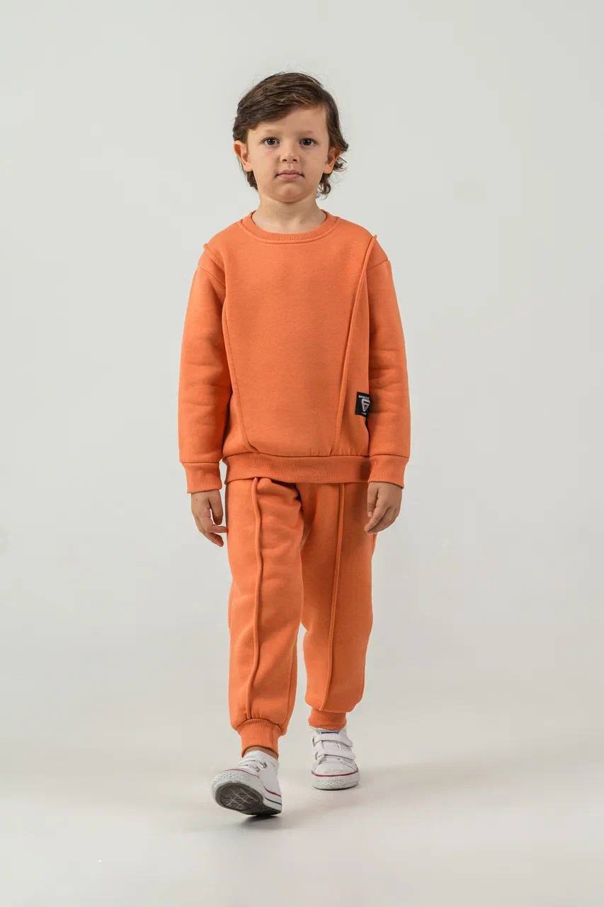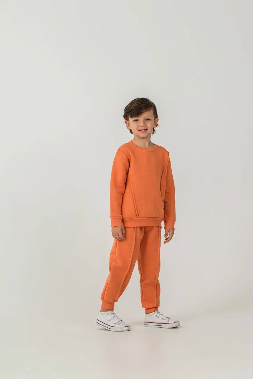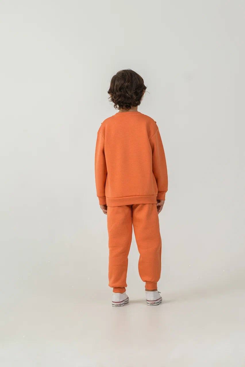 3 - 10 Yaş Arası Turuncu Düz Renk Geniş Kalıp Oversize Kesim Erkek Çocuk Takım