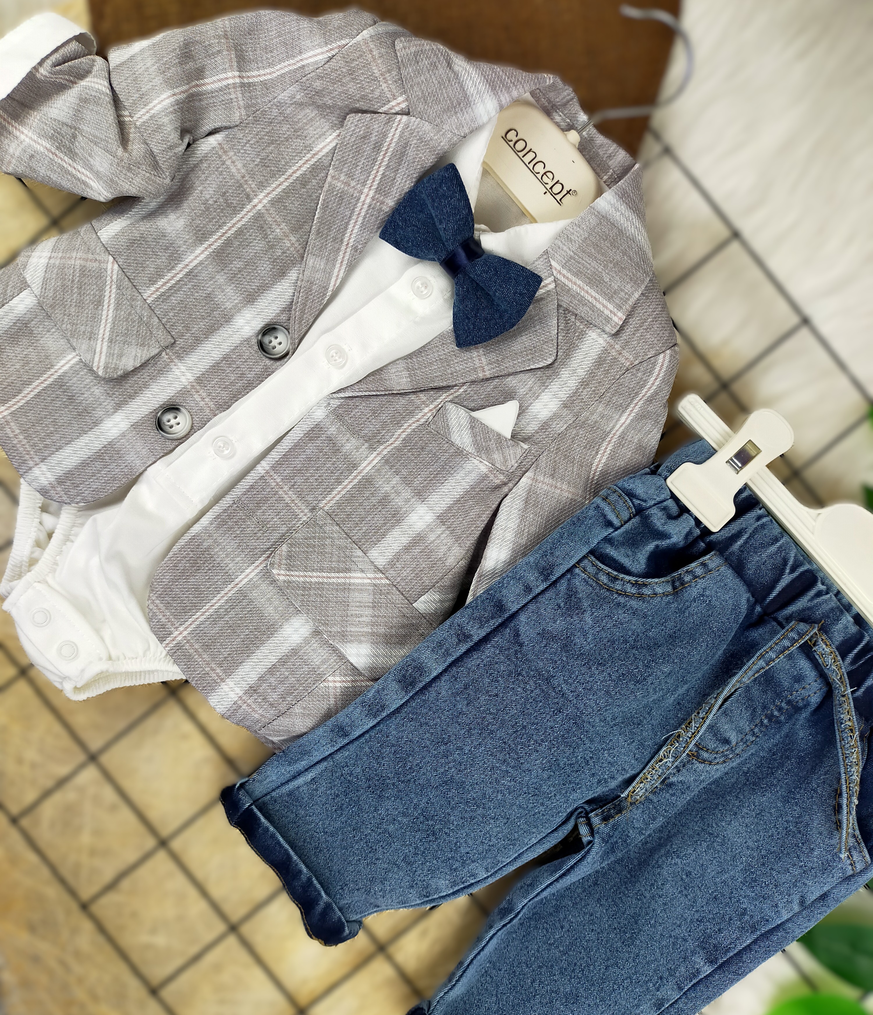 3 - 18 aylık erkek bebekler için tasarlanmış bu şık takım, zarafeti ve konforu birleştiriyor. Oğlunuzun her ortamda en şık şekilde görünmesi için ideal bir tercih. Takım, minik bebeklerin söylenmeden rahatça giyebileceği bir konfor sunarken, stil sahibi ve göz alıcı bir görünüm kazandırır. Şimdi, küçük beyefendinizi en güzel şekilde giydirme zamanı!