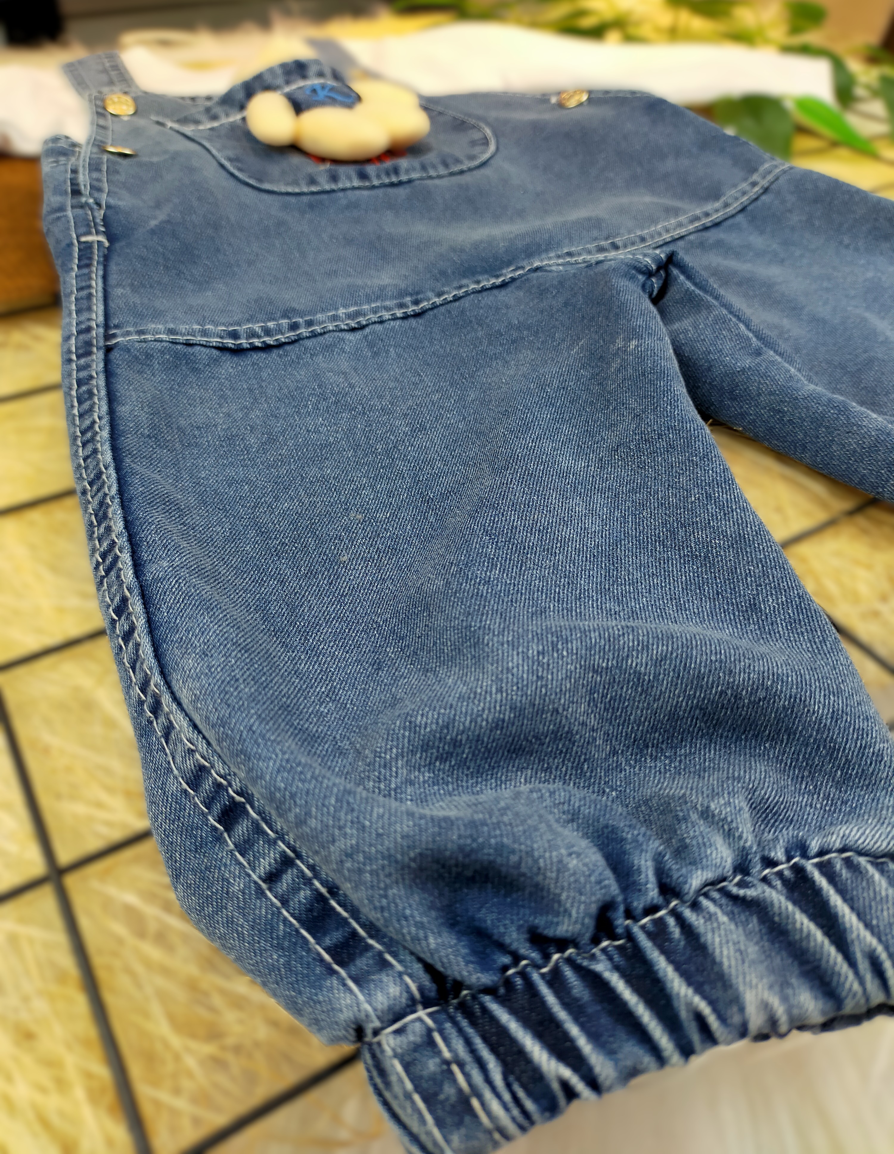 - Malzeme: %100 pamuklu kot kumaş, yumuşak ve hafif yapısı sayesinde bebeğinizin cildine dosttur.