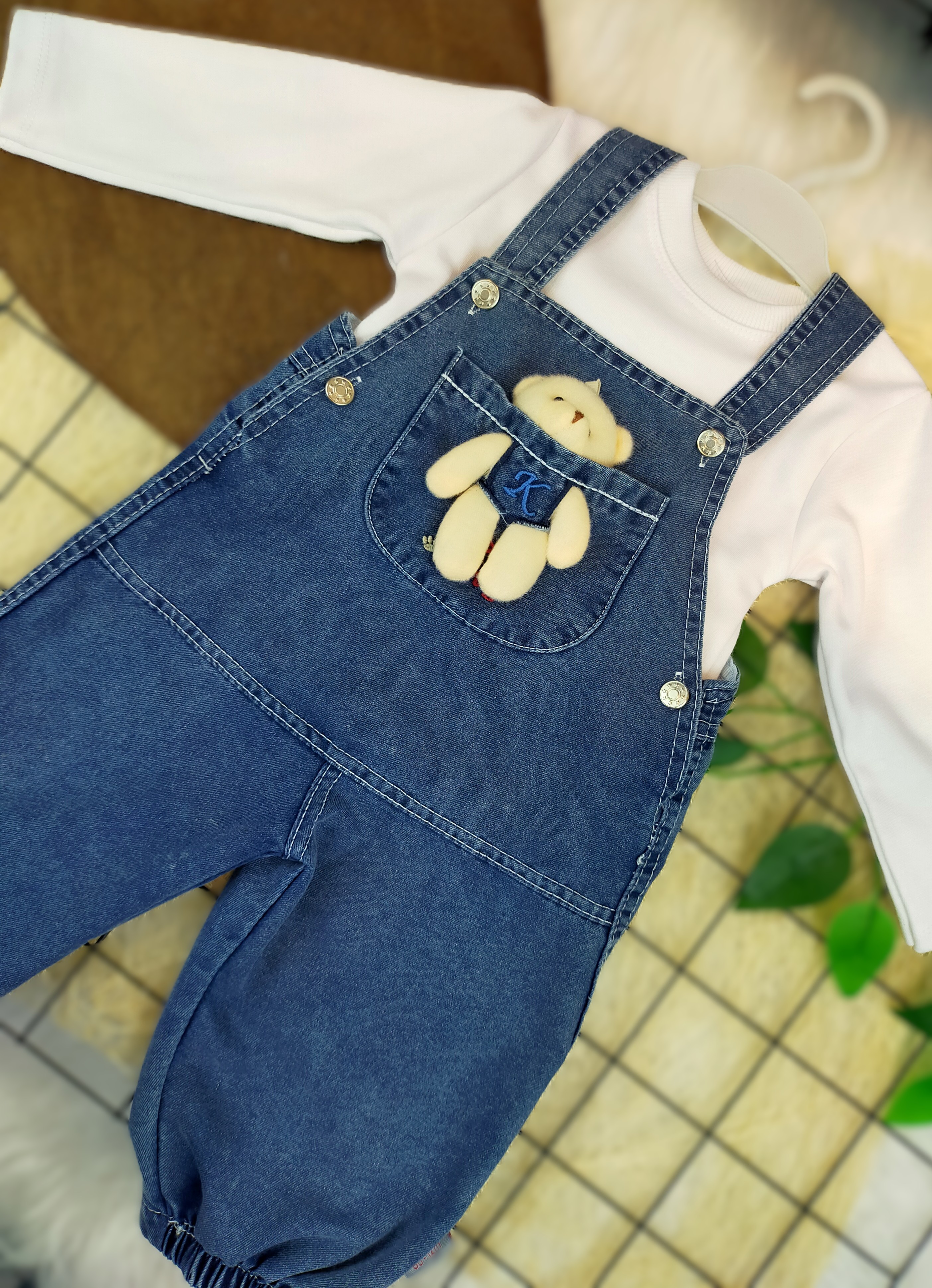 Miniklerin şıklığını ve rahatlığını bir araya getiren Ayıcık Detaylı Kot Salopet, 6 ay - 1 yaş arası bebekler için özel olarak tasarlanmıştır. Bu sevimli salopet, hem günlük kullanımda hem de özel günlerde bebeğinizin tarzını ön plana çıkaracak bir parça.
