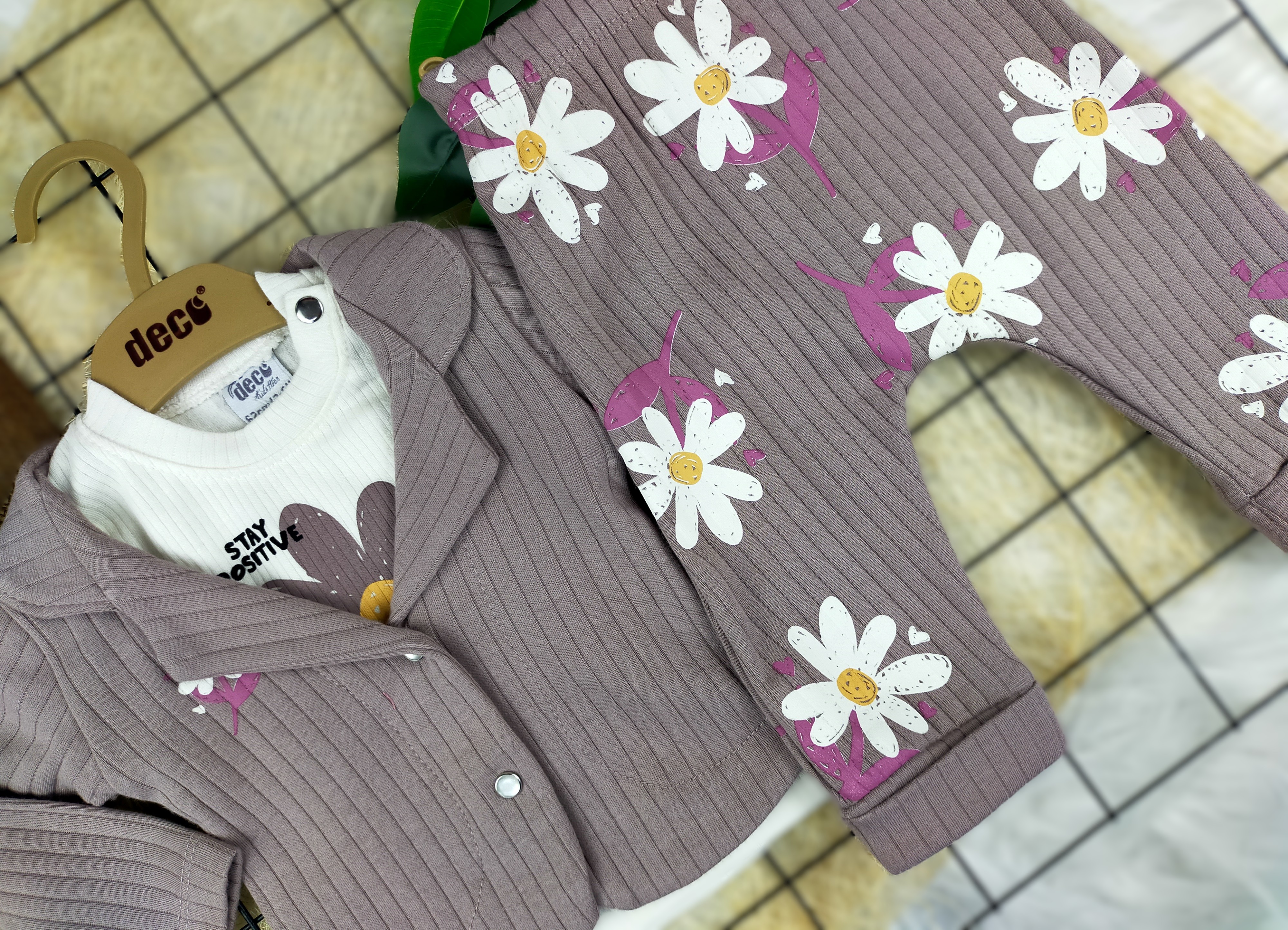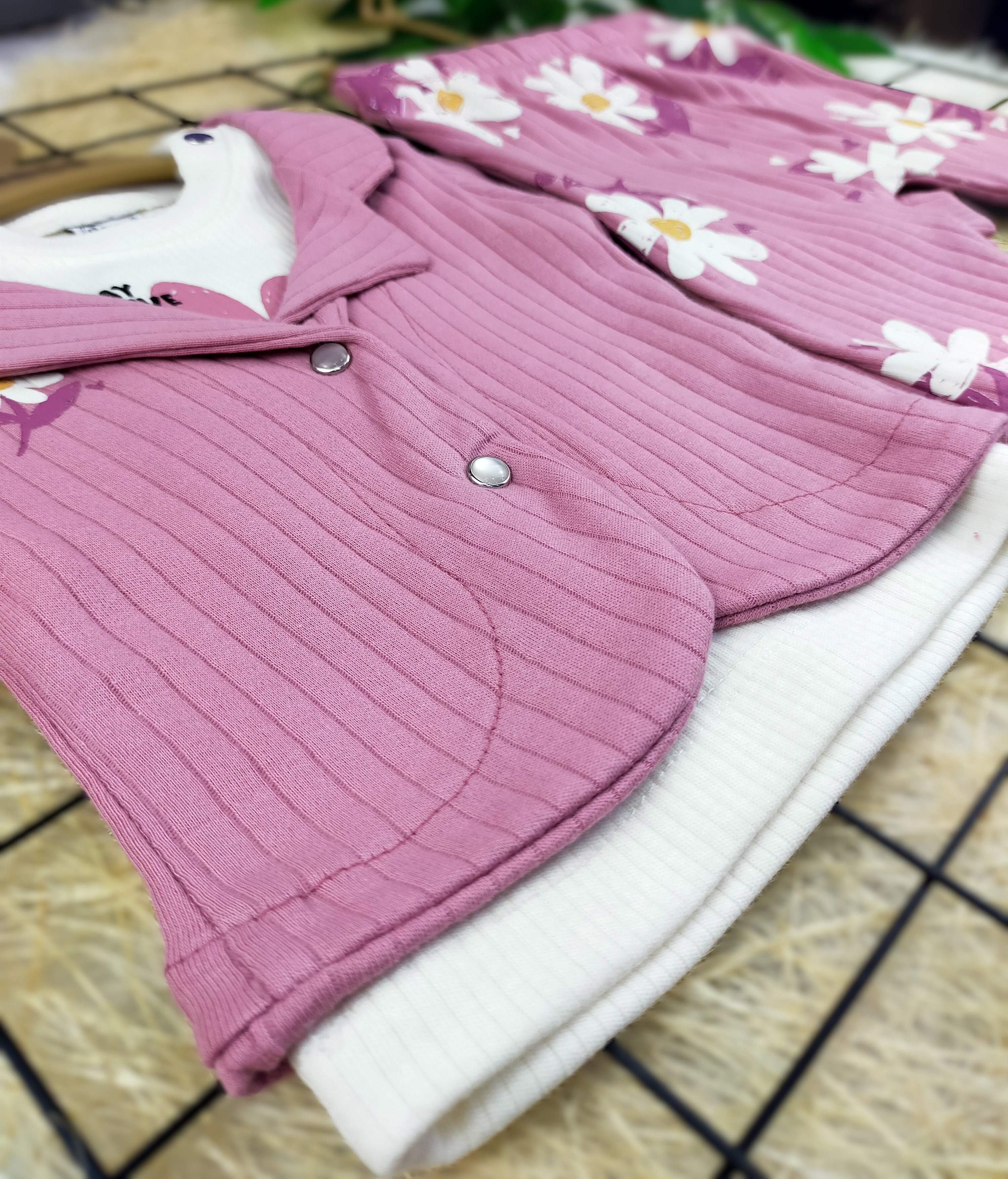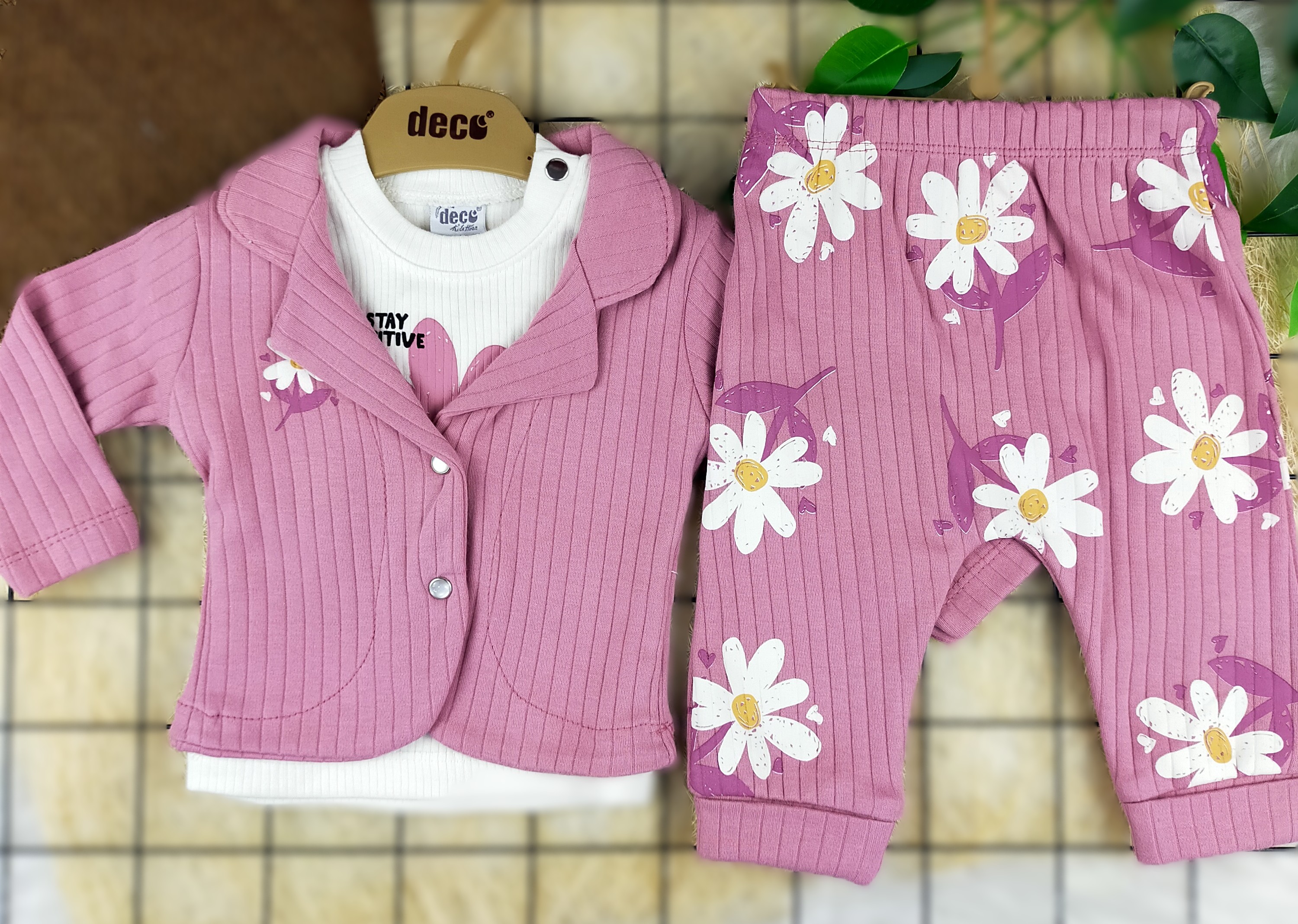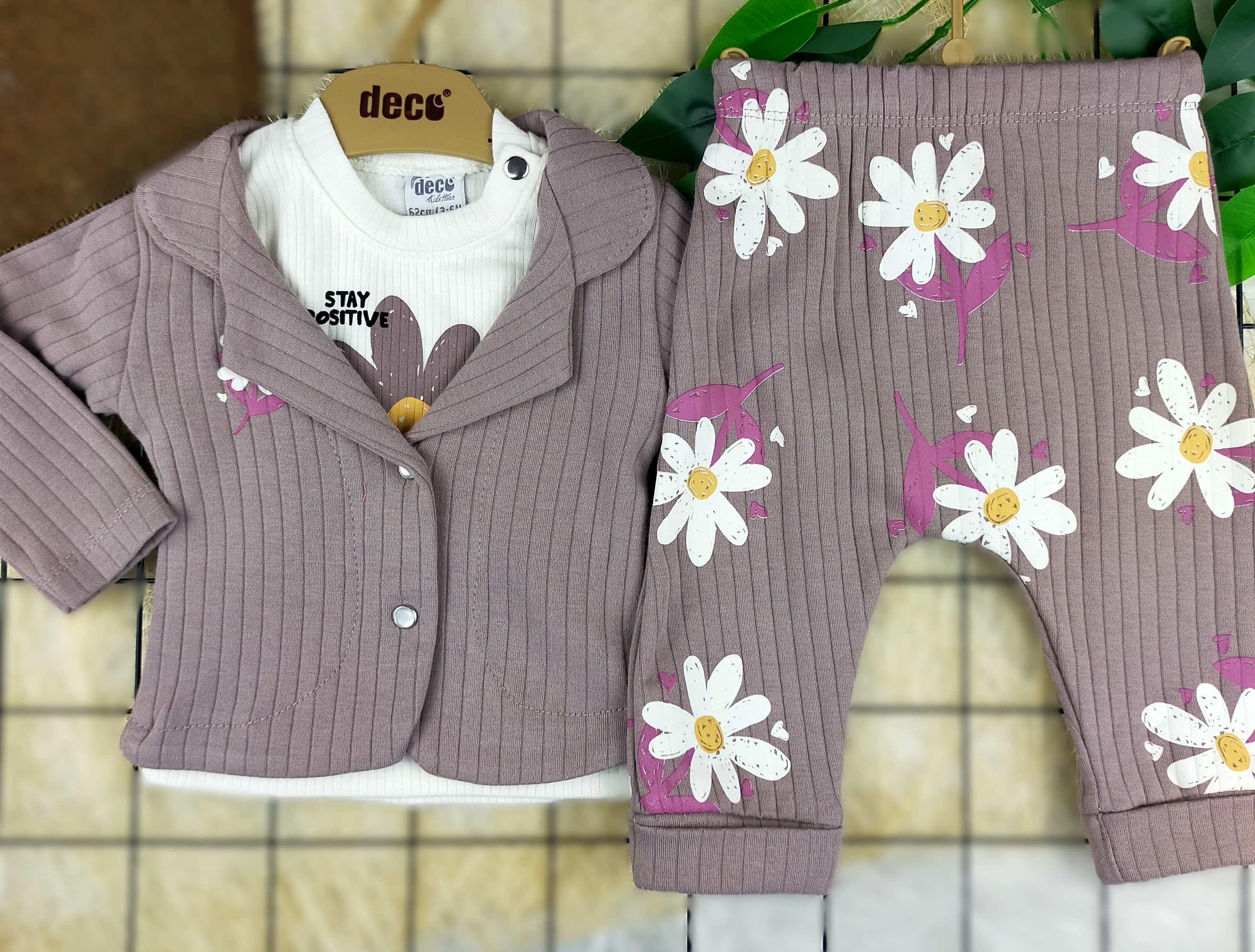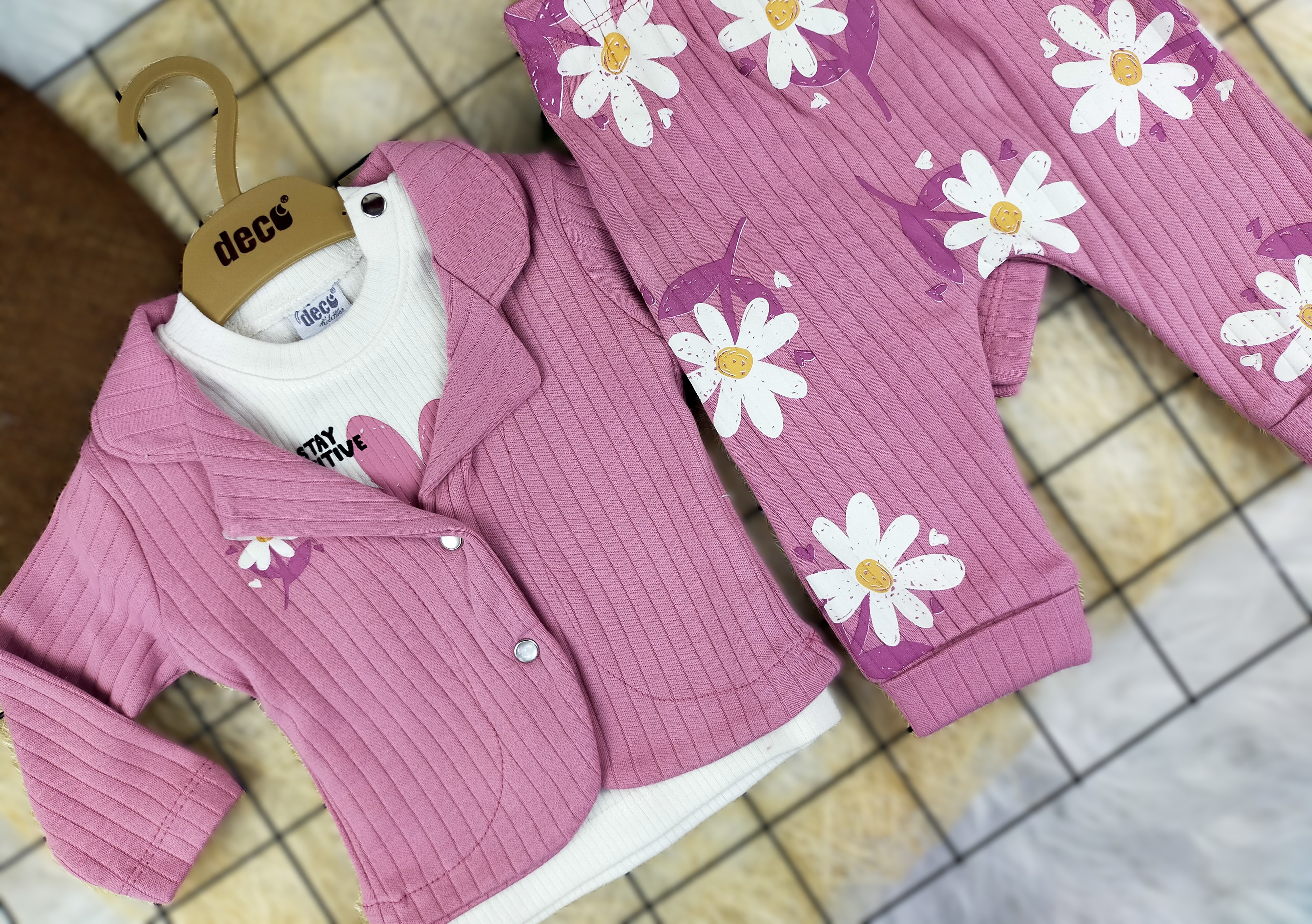 3 Ay 1 Yaş Arası Papatya Desenli Üçlü Takım, hem şıklığı hem de konforu bir arada sunarak, miniklerin dolaplarında yer alması gereken vazgeçilmez bir parça. Papatya desenleriyle baharın enerjisini yansıtan bu takım, küçüklerin gün boyunca neşeli ve rahat olmasını sağlar. Hemen satın alarak minik prensesinizi mutlu edin!