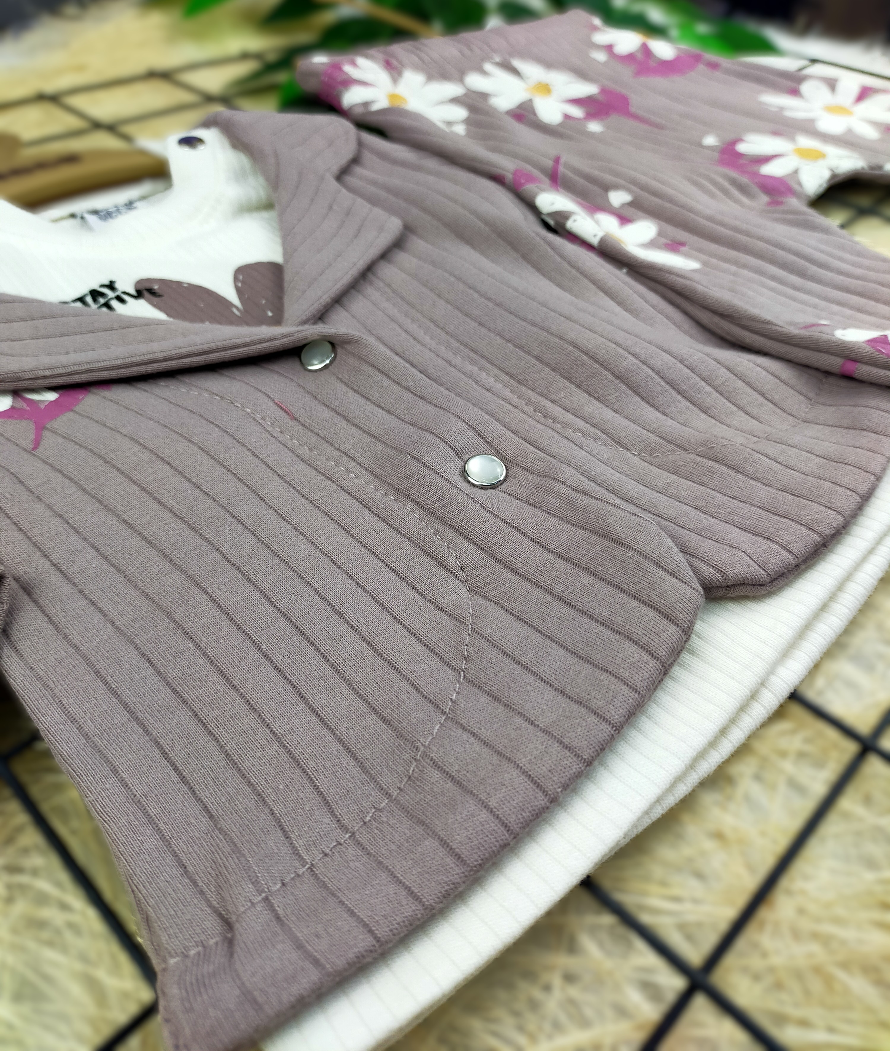 Bu üçlü takım, hem şıklığı hem de işlevselliği ile dikkat çekiyor. Tişört, kısa kollu ve rahat kesimiyle sıcak yaz günlerinde ferahlık sağlarken, şort ise hareket özgürlüğü sunar. Üst kısmındaki papatya deseni, takımın genel havasını neşeli bir şekilde tamamlar. Hırka/ceket ise serin akşamüstlerini düşünerek tasarlandı ve minik prenseslerin şıklığından ödün vermeden sıcak kalmalarını sağlıyor.