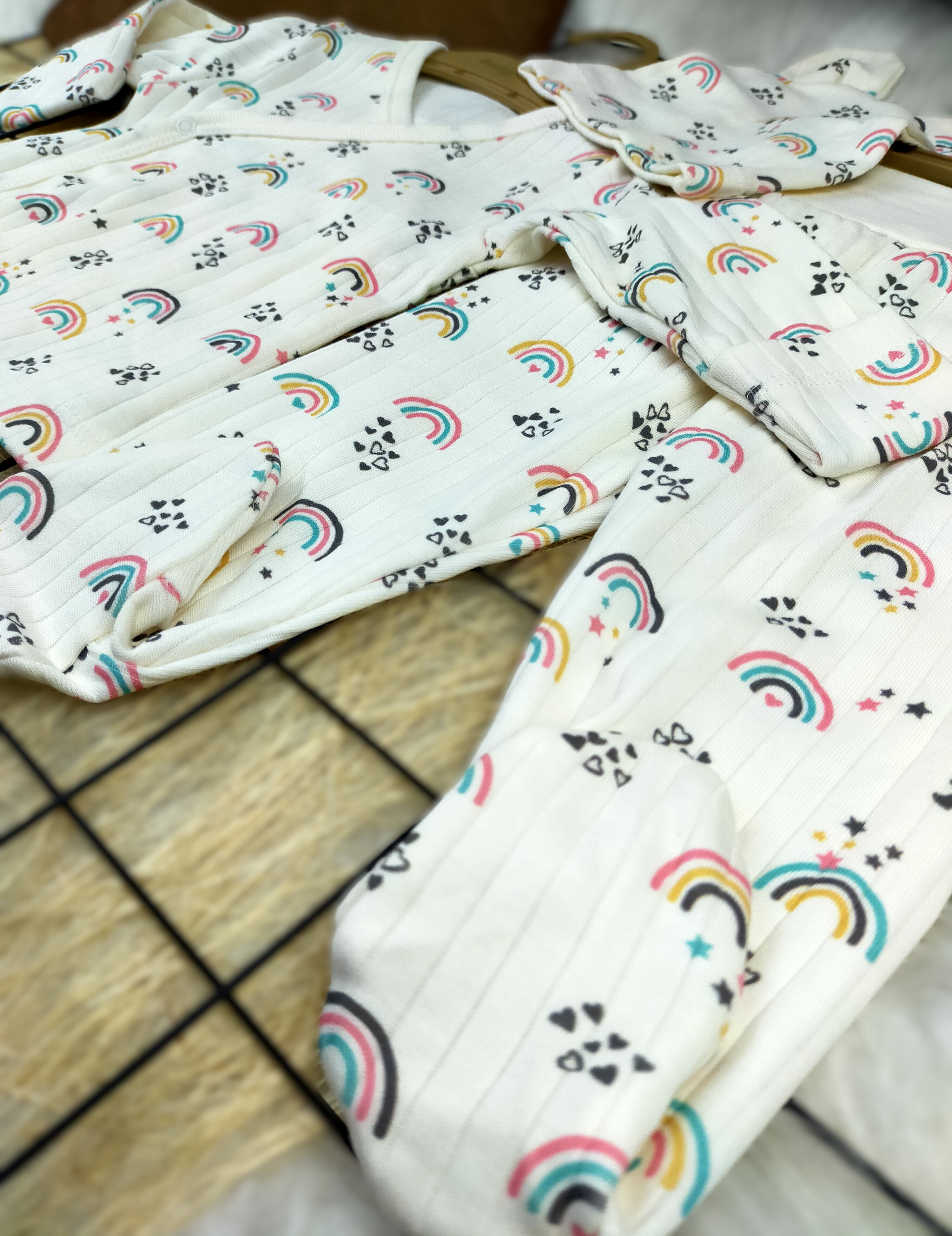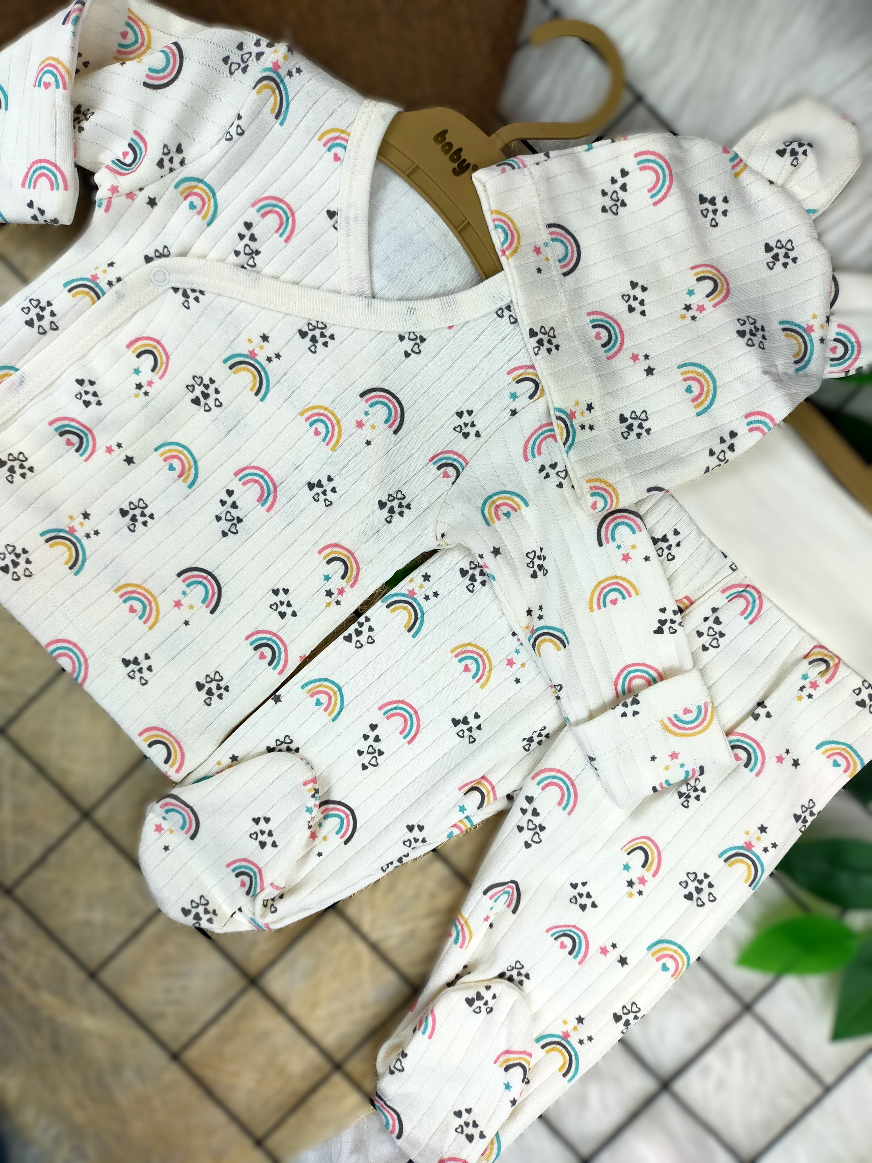 3 Parça Gökkuşağı Desenli Zıbın Takımı (Alt, Üst, Şapka)
