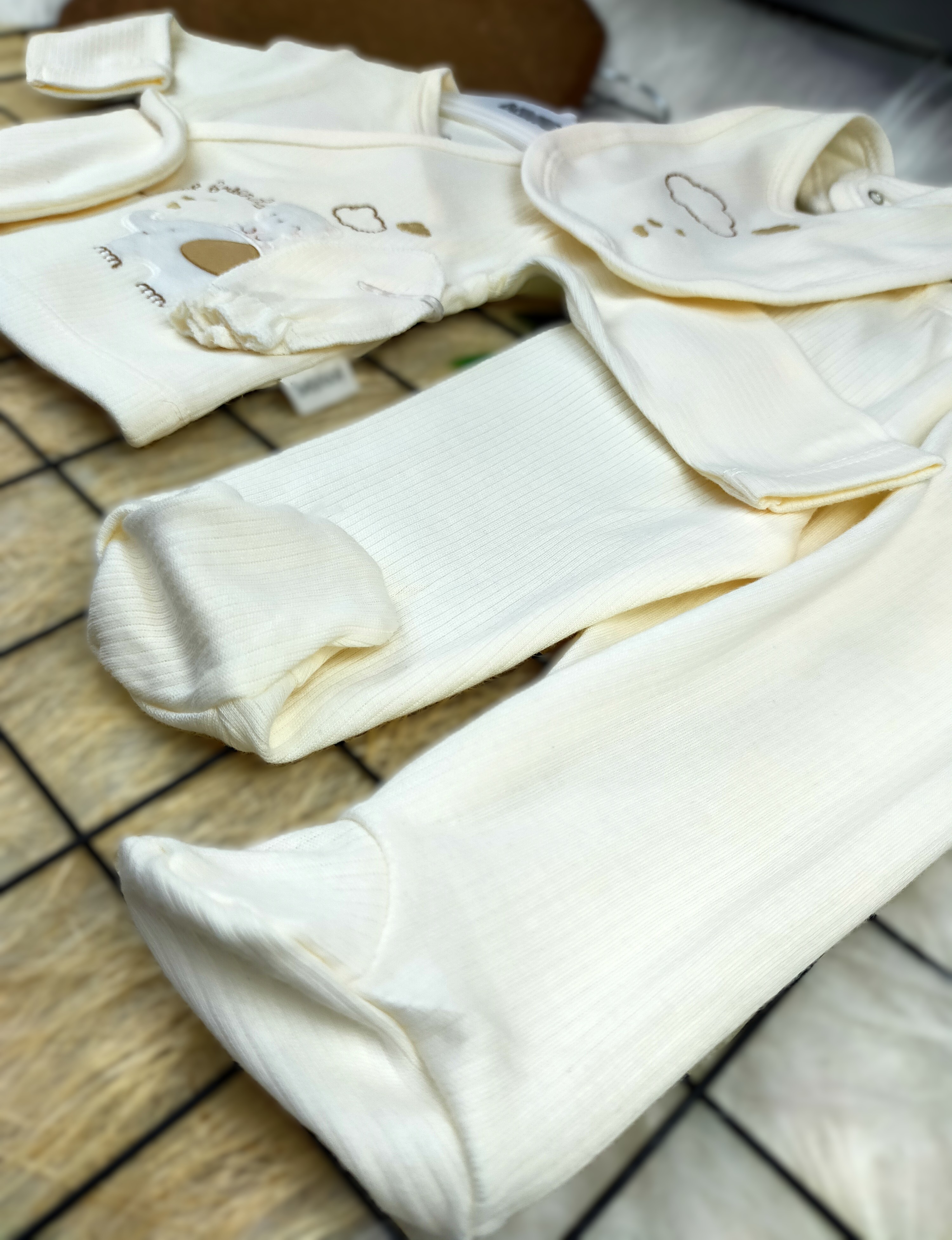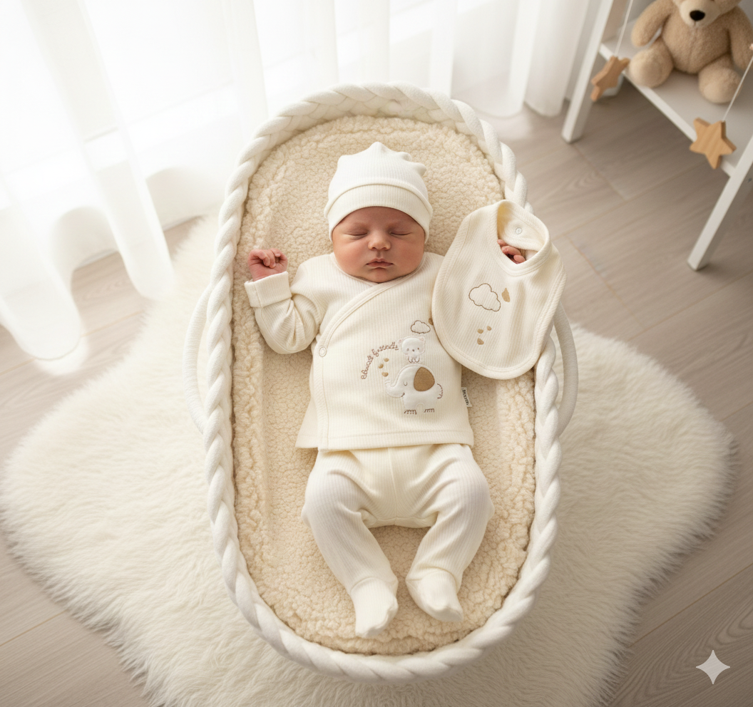 5 Parça Zıbın Takımı, %100 pamuk içeren yüksek kaliteli kumaştan üretilmiştir. Bu sayede, bebeğinizin cildi ile dost olup, gün boyu konforlu bir deneyim sunar. Pamuklu yapı, hem nefes alabilirliği ile hem de hipoalerjenik özellikleri ile öne çıkar, böylece bebeğinizin sağlığı ve konforu güvence altına alınır.