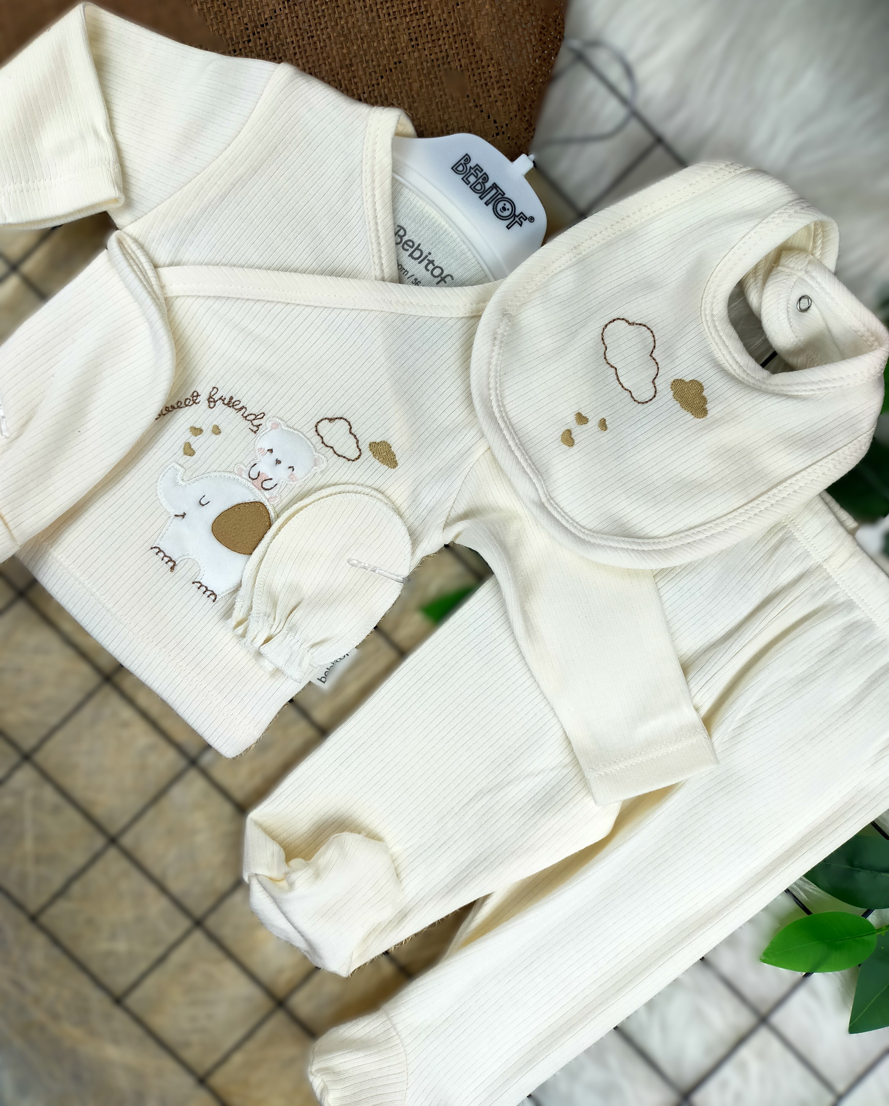 5 Parça Fil ve Ayıcık Desenli Zıbın Takımı, hem eğlenceli hem de fonksiyonel bir üründür. Ebeveynler için pratik bir kullanım sunarken, bebeklerin de konforunu ön planda tutar. Sevimli tasarımı ile bebeğinizi şık bir şekilde giydirmenin en güzel yolu. Hem hediye olarak tercih edebileceğiniz hem de kendi bebeğinize alabileceğiniz harika bir set.