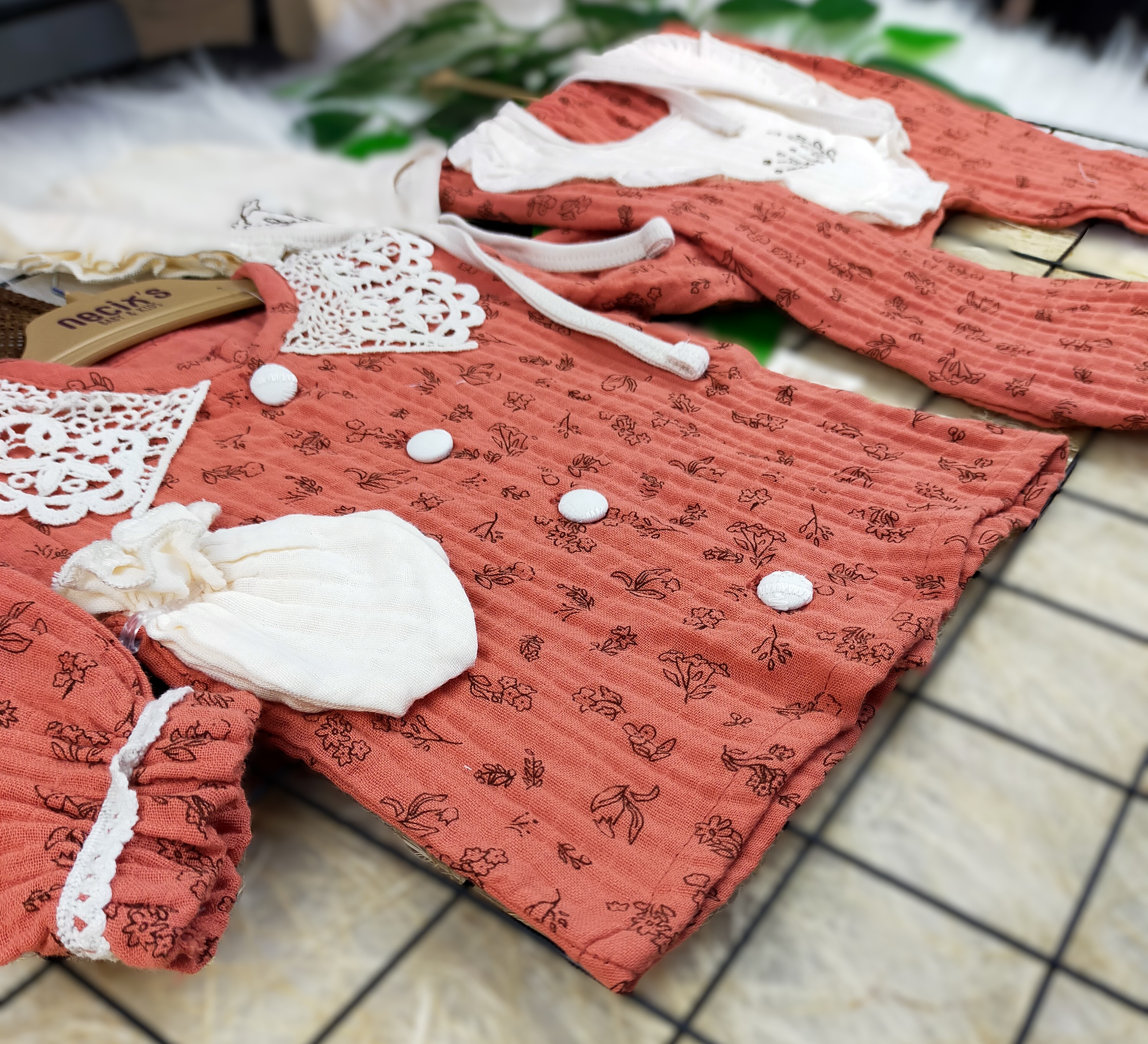 Bebekler için özel olarak tasarlanmış olan 5 parça müslin kumaş yaka detaylı zıbın takımı, konfor ve şıklığı bir arada sunuyor. Hamile annelerin hayallerini süsleyecek bu set, küçük bebeklerin hassas cildine zarar vermeyen yumuşak bir kumaş yapısına sahiptir. Müslin kumaşın hafifliği ve nefes alabilirliği sayesinde, bu zıbın takımı yazın sıcak günlerinde bile bebeğinizi serin tutar.