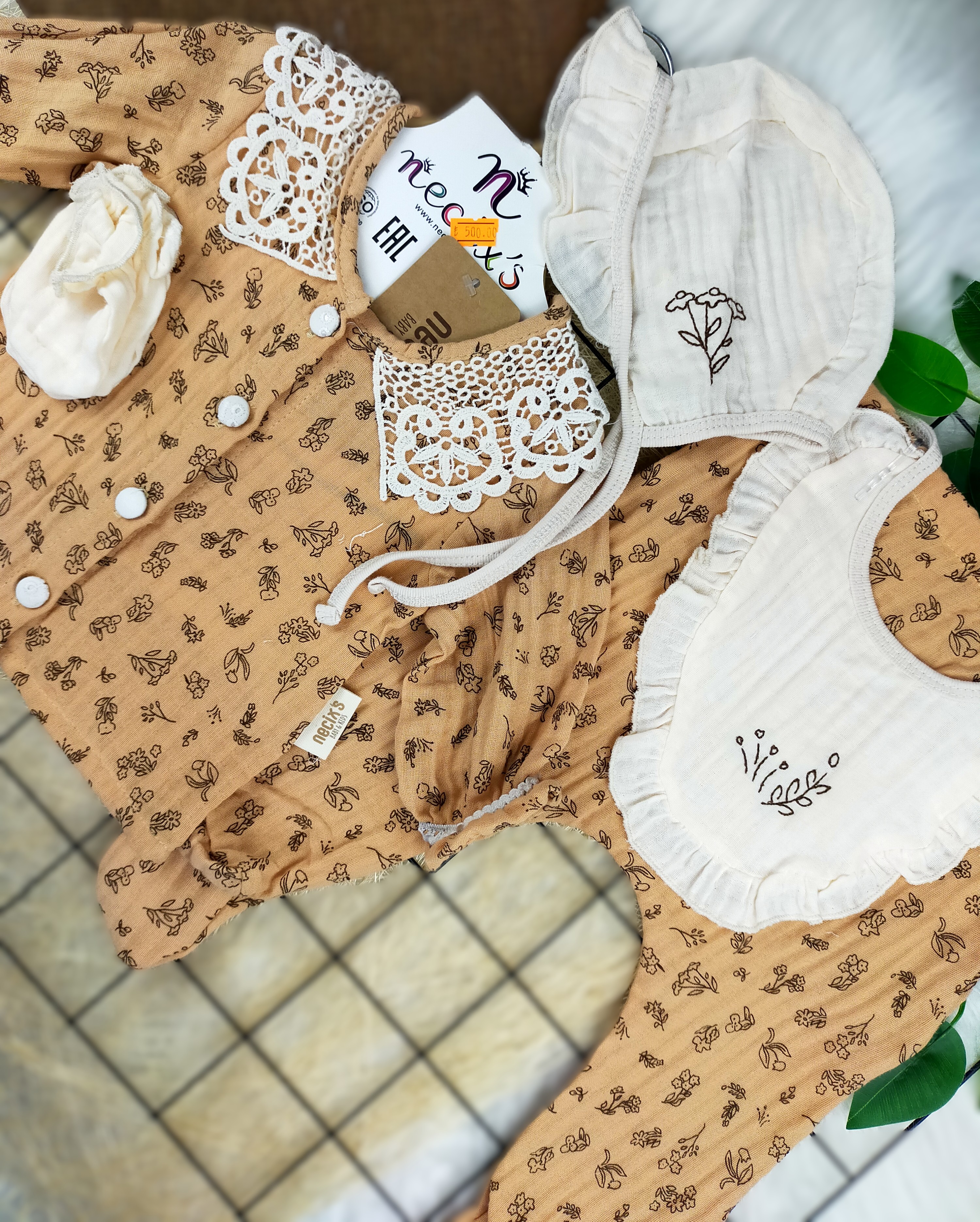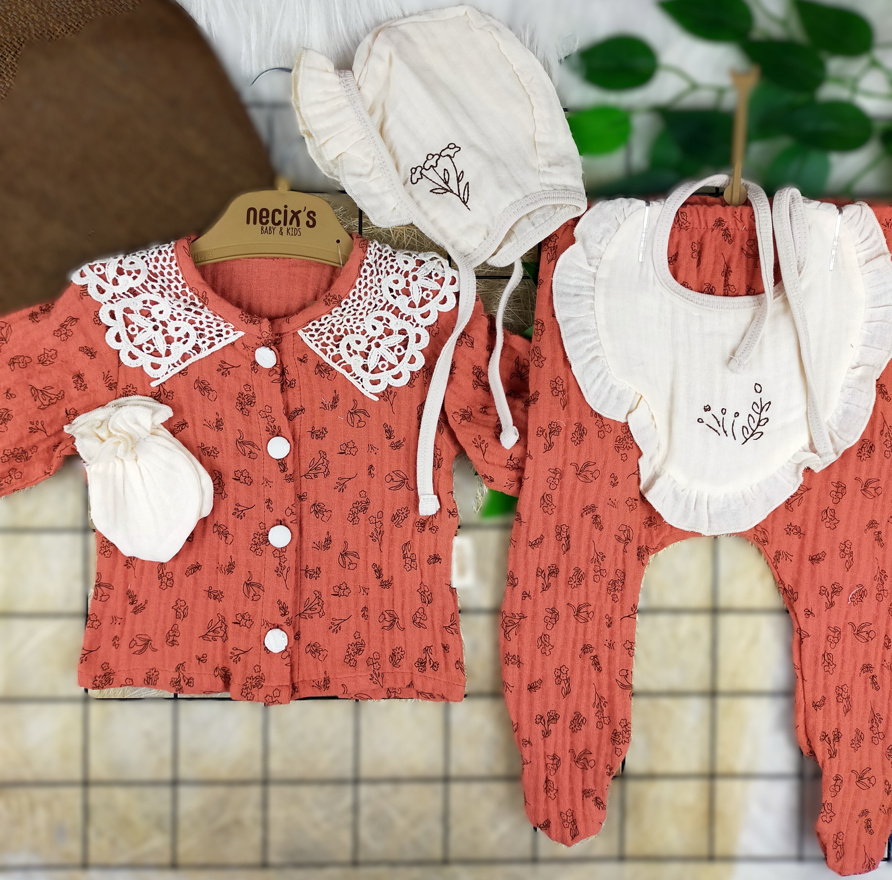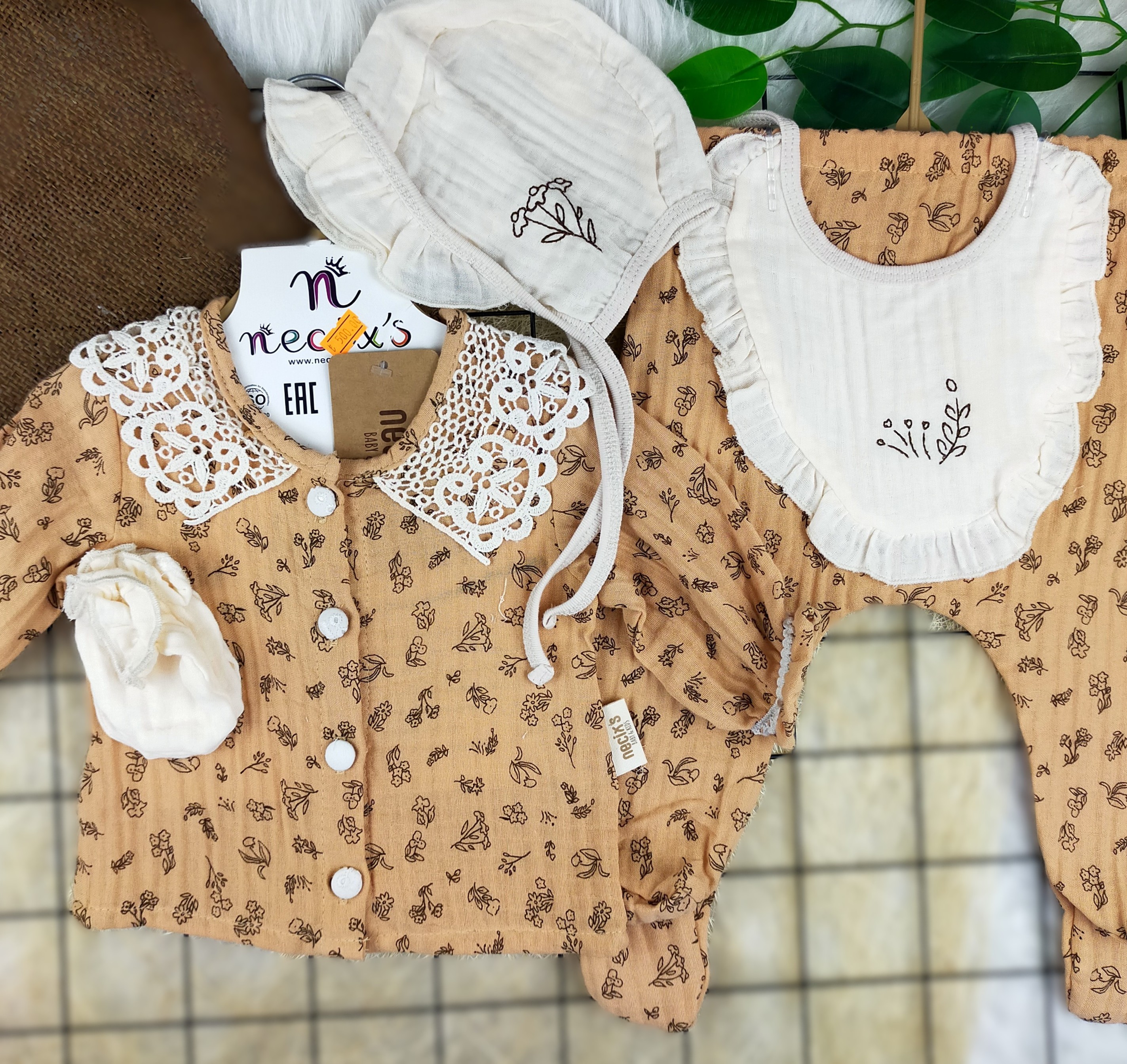 5 Parça Müslin Kumaş Yaka Detaylı Zıbın Takımı
