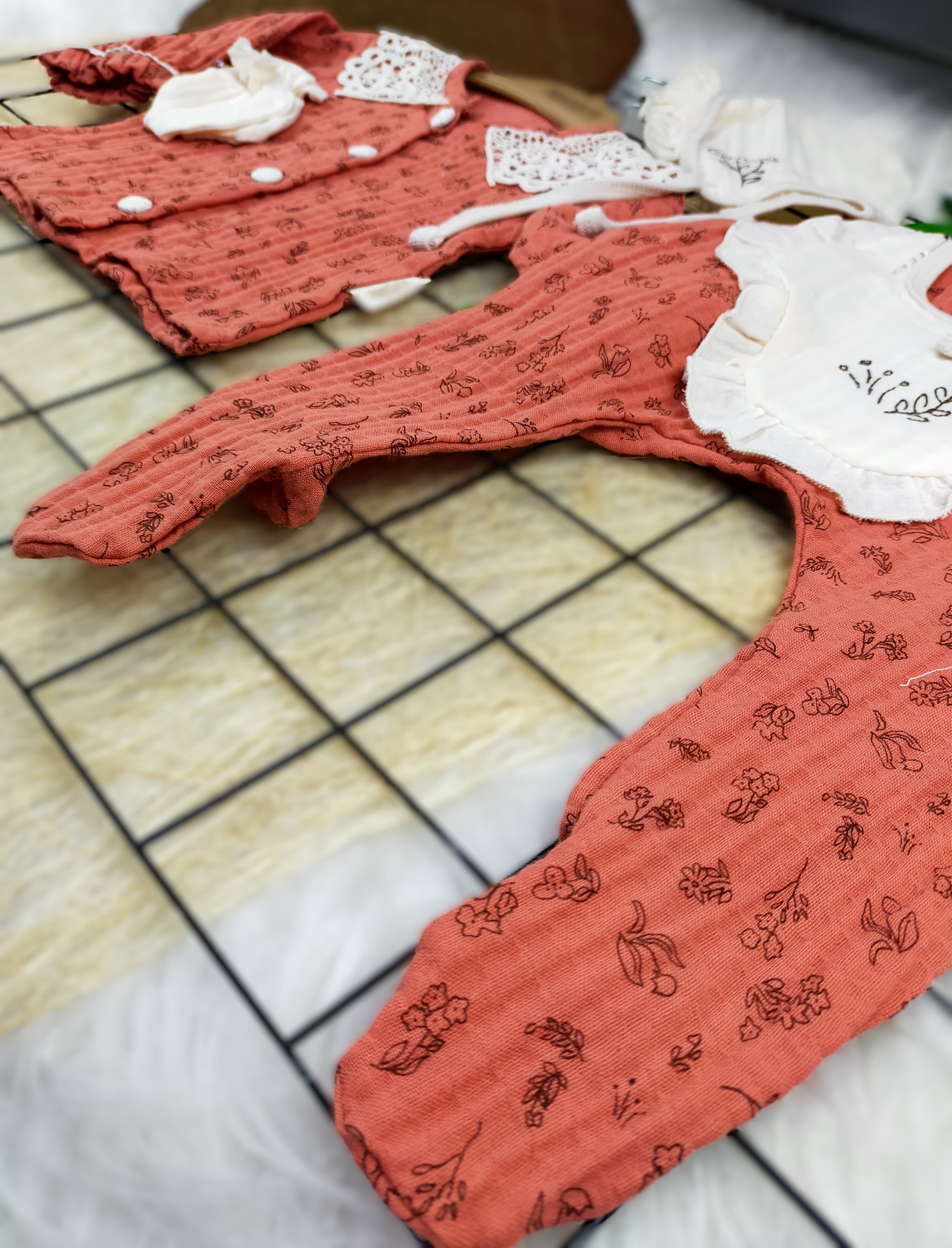 5 parça müslin kumaş yaka detaylı zıbın takımı, bebeğinizin yalnızca rahat etmesini sağlamakla kalmaz, aynı zamanda tarzını da tamamlar. Farklı renk seçenekleri ve şık yaka detaylarıyla, bebeğinizin her anında zarif görünmesini sağlar.