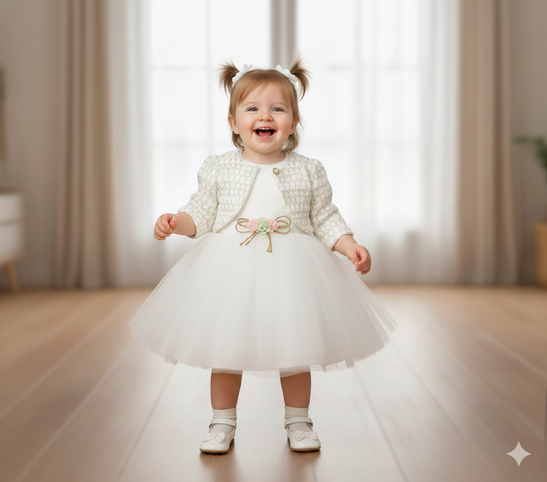 Mevlüt, doğum günü ya da diğer özel günlerde minik prenseslerinizin şıklığını artırmak için tasarlanmış bu elbise ve bolero seti, her anı unutulmaz kılacak. Zarif detayları ve göz alıcı tasarımı ile aileniz ve misafirlerinizin beğenisini kazanacak.