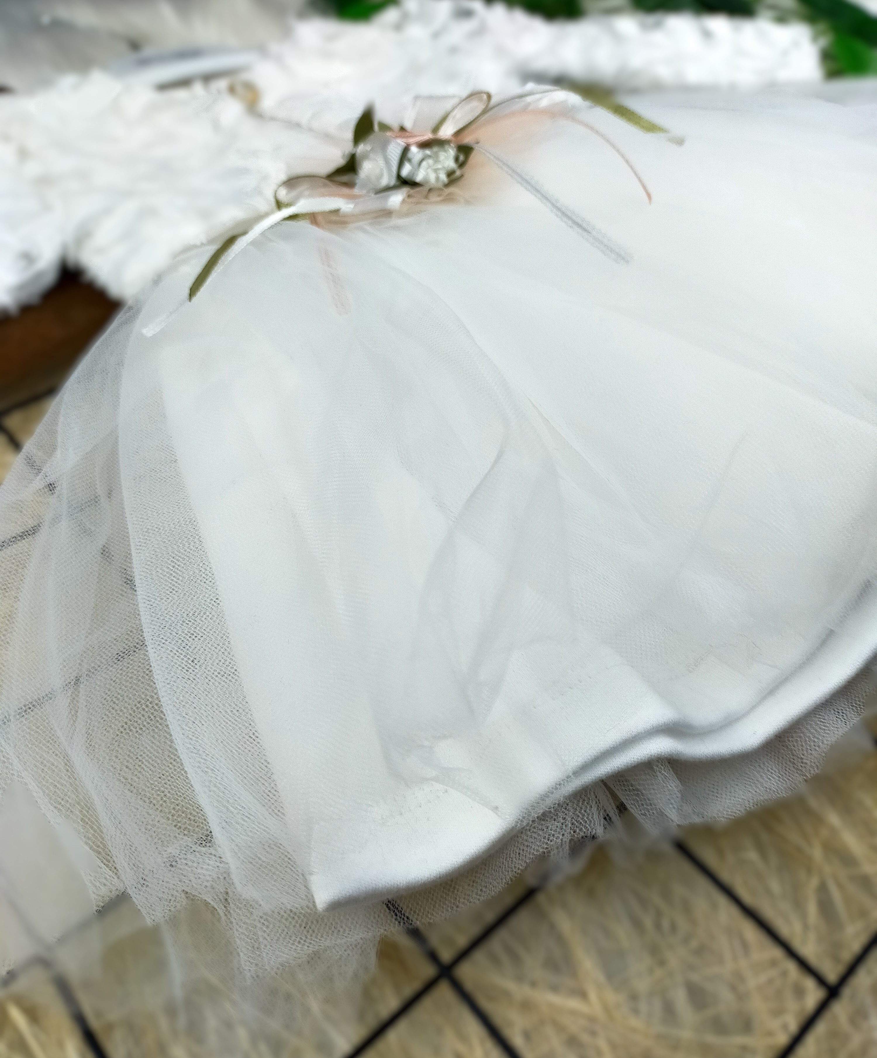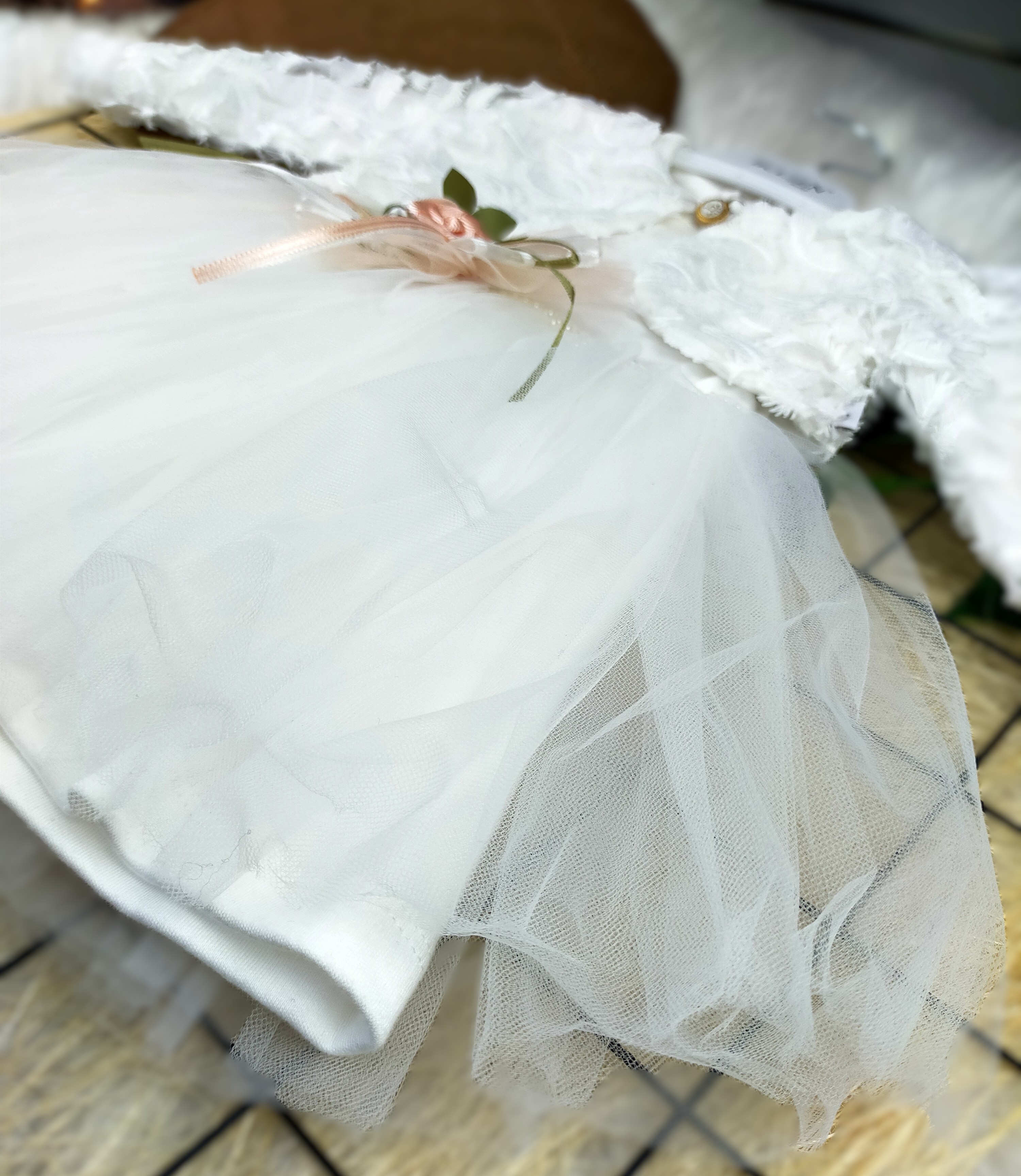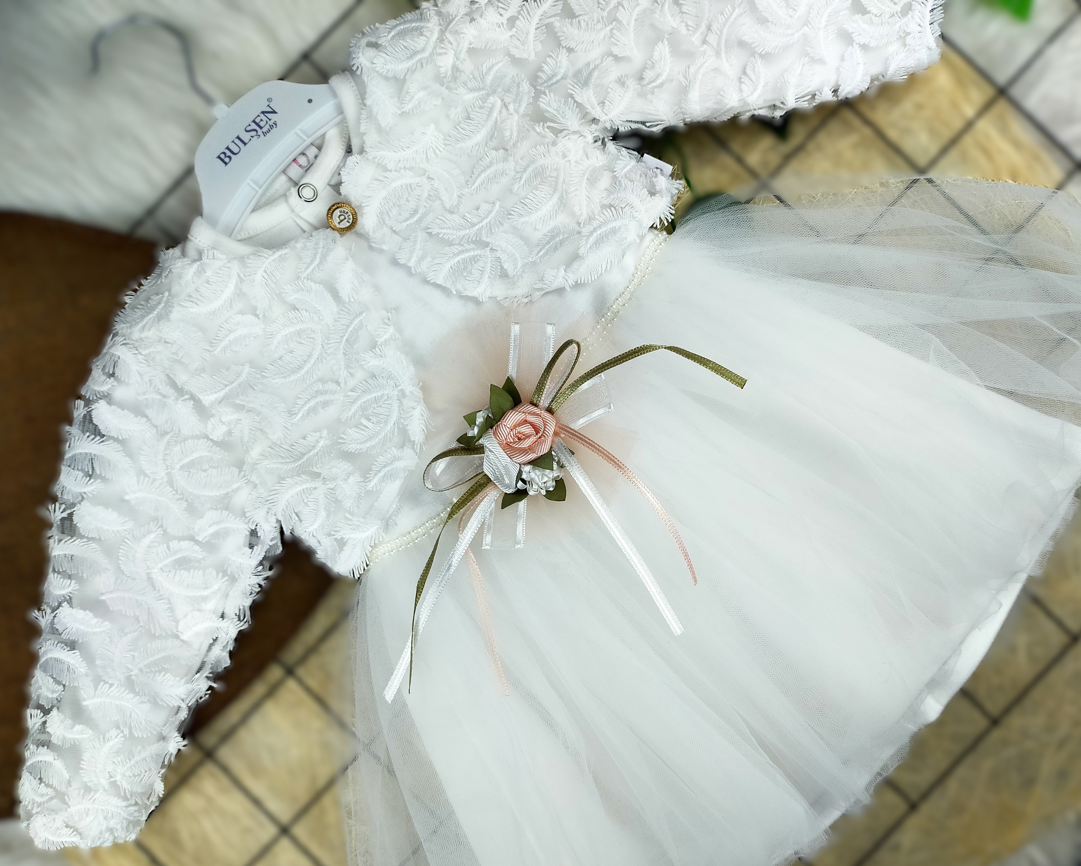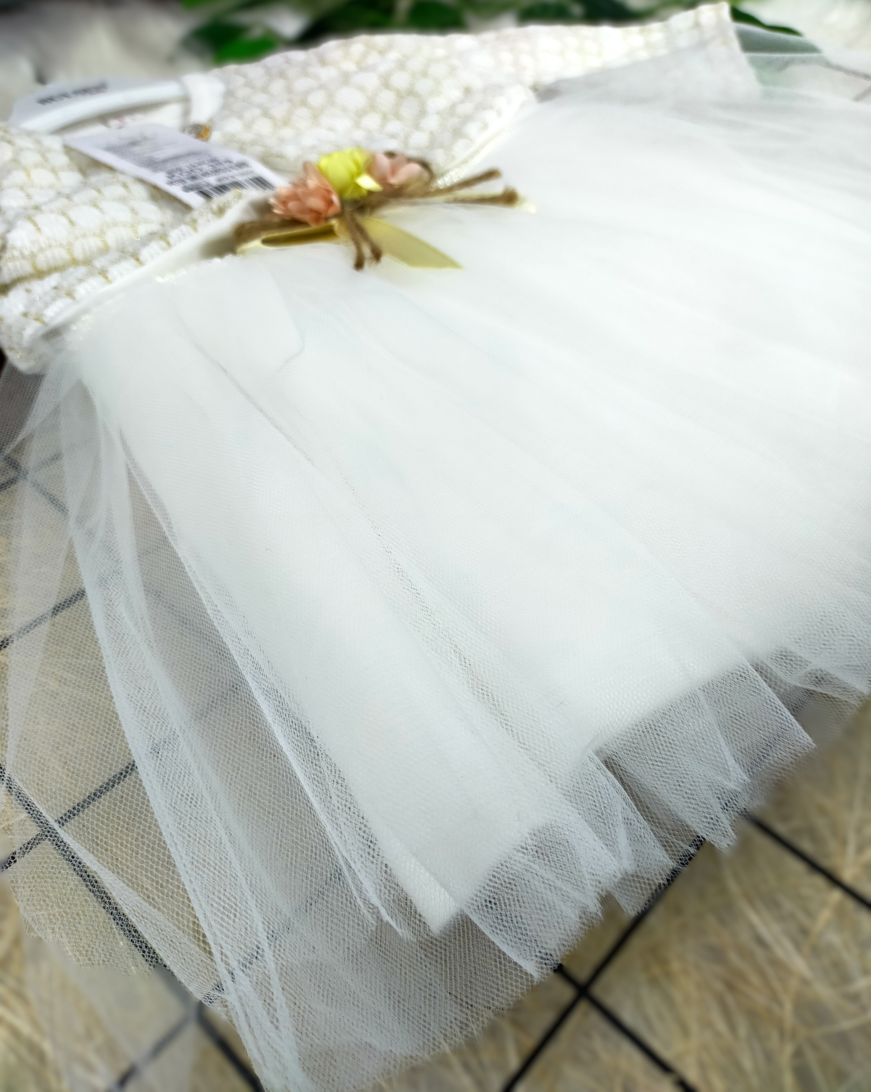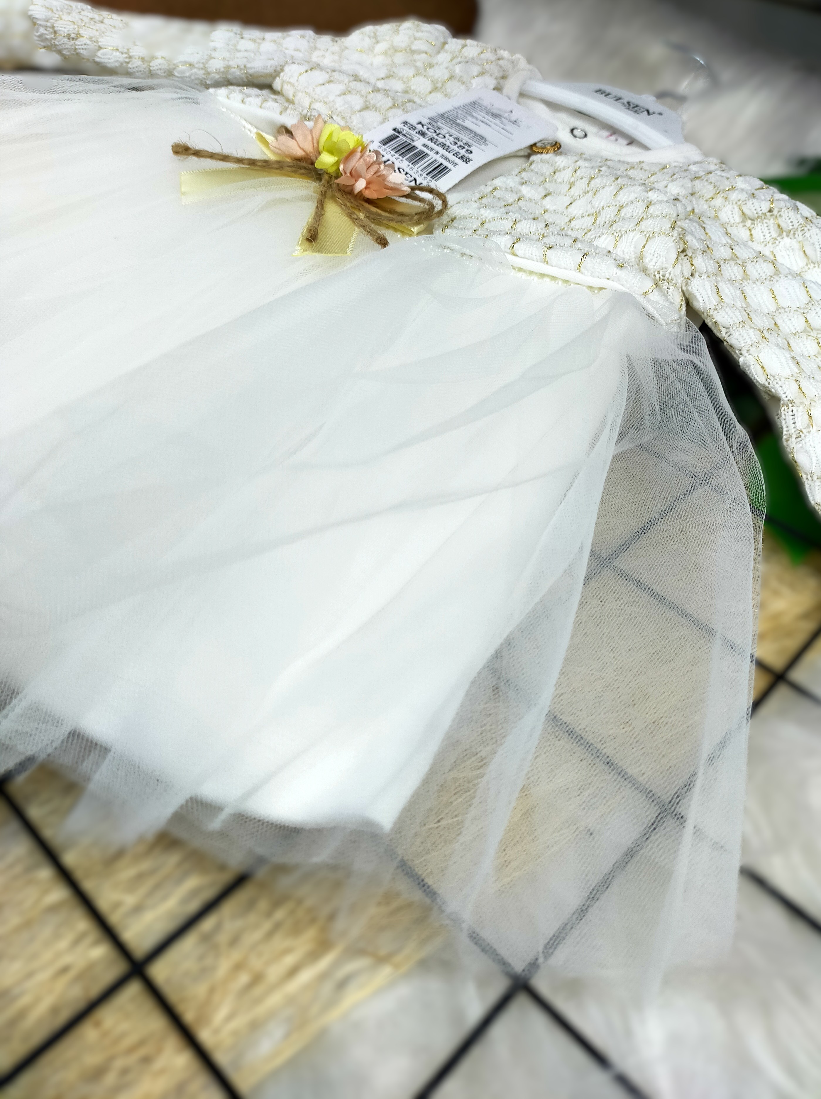 - Tasarım: Zarif ve şık bir görünümü destekleyen, tüllü detayı ve minik çiçek motifiyle süslenmiş bir elbisedir.