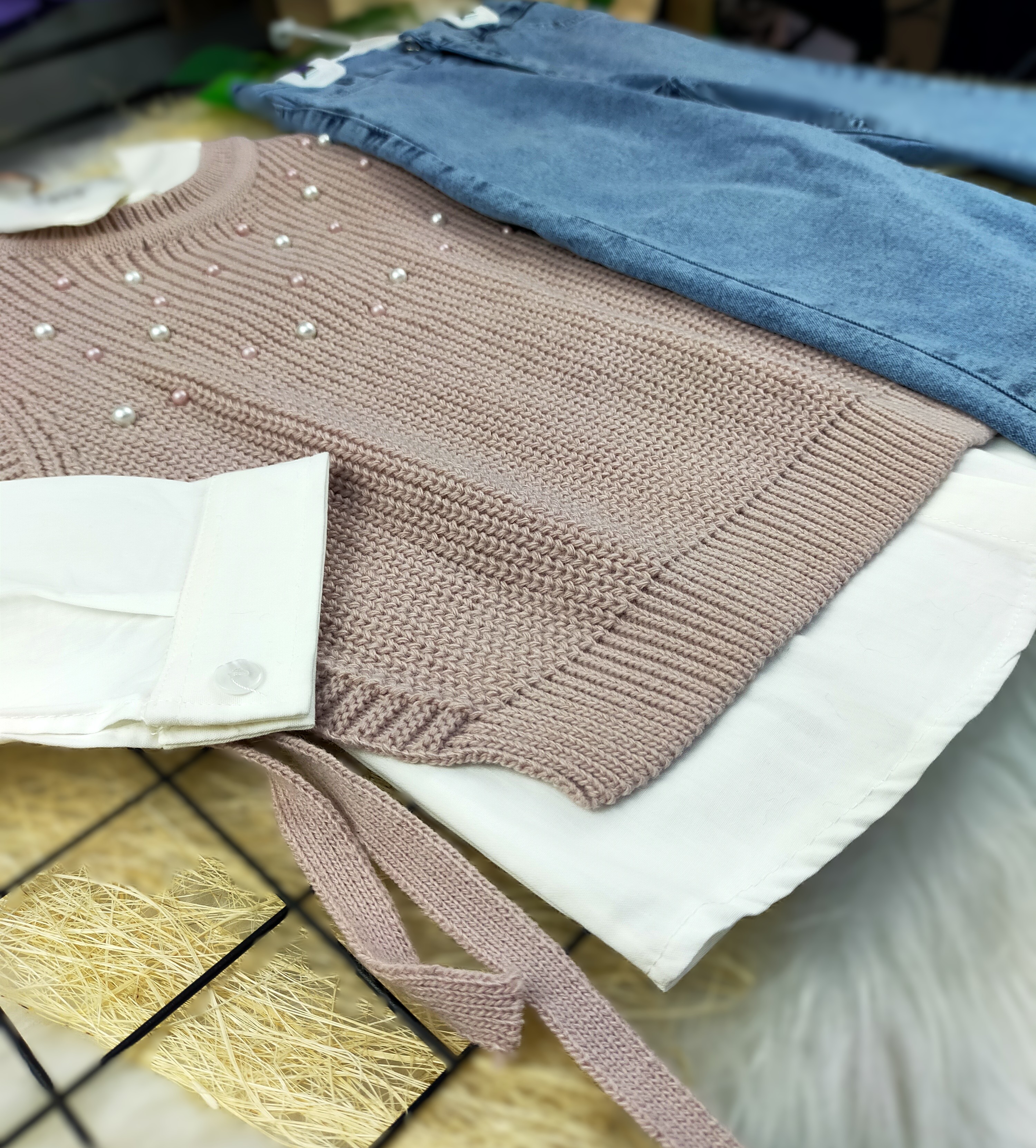 - İncili Süveter: Takımın en dikkat çekici parçası olan süveter, zarif incilerle süslenmiştir. Yumuşak dokusu sayesinde çocukların cildine zarar vermeden rahat bir kullanım sunar. Üstelik, soğuk havalarda ekstra bir katman sağlar.