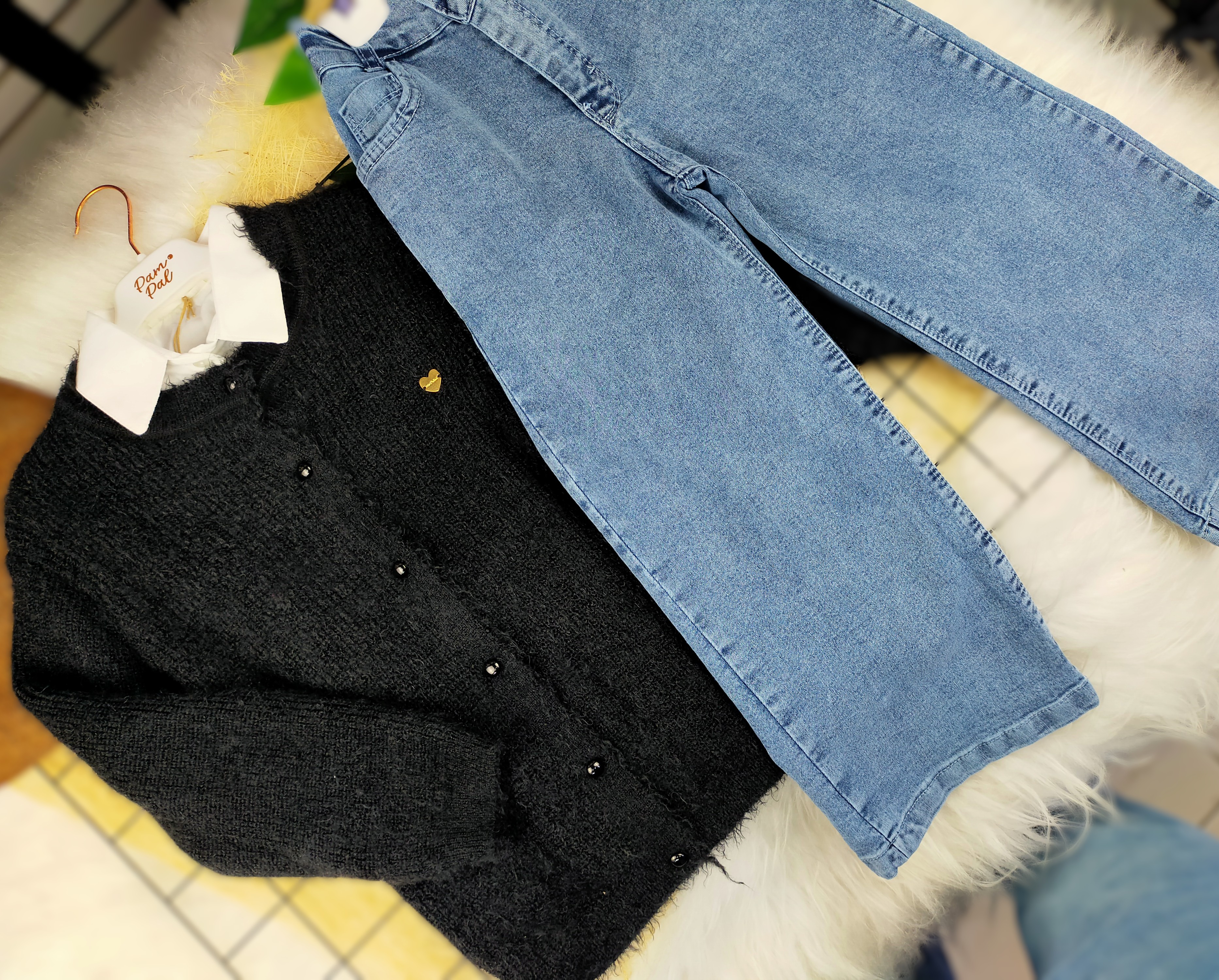 6-9 yaş arası peluş hırka, gömlek, çanta ve bol paça kotlu dörtlü kız çocuk takımı, her detayında çocukların konforunu ve şıklığını ön planda tutarak tasarlanmıştır. Alışveriş listenizde yerini almayı bekleyen bu harika set, çocuklarınız için değişen mevsimlerde vazgeçilmez bir parça olacaktır.