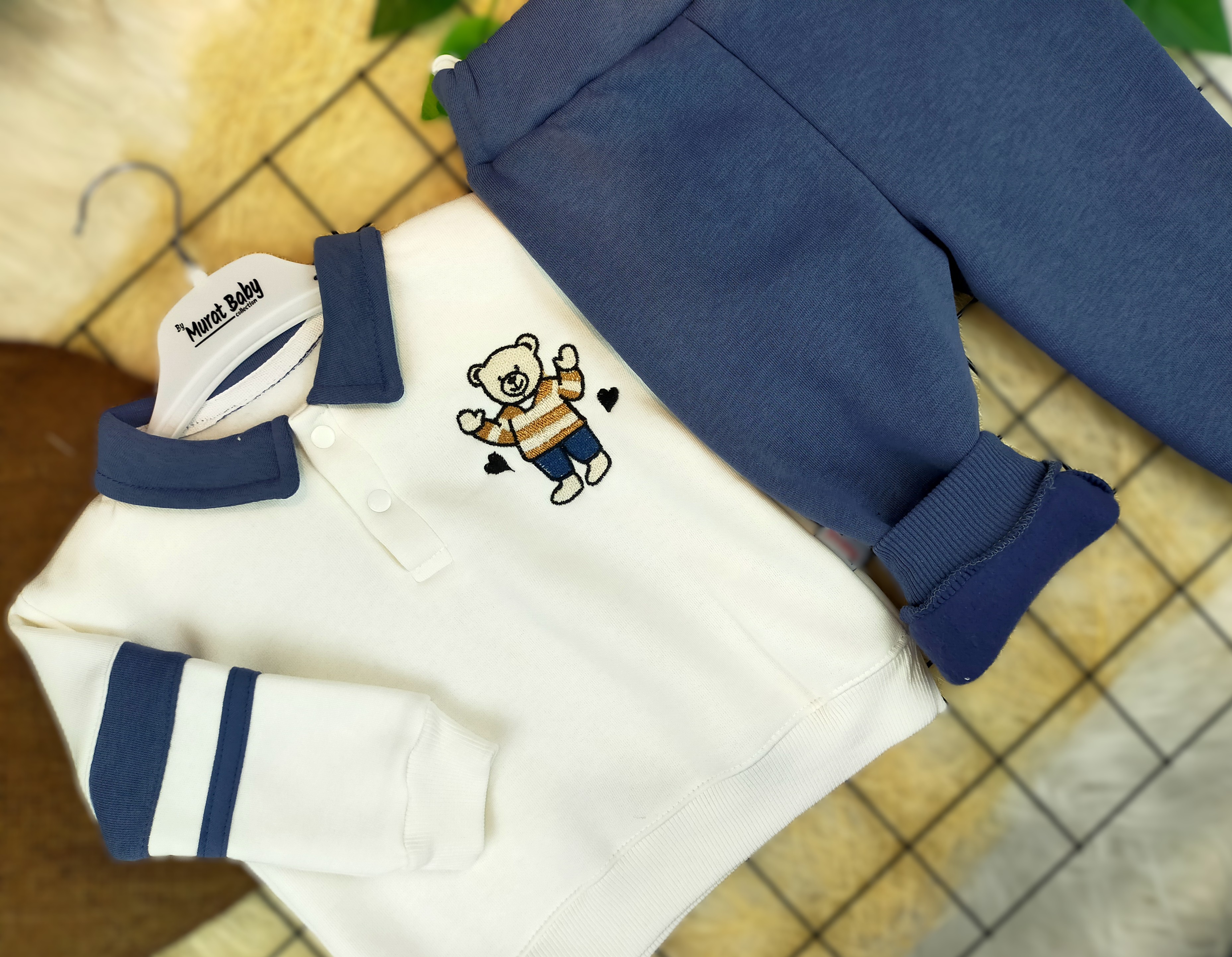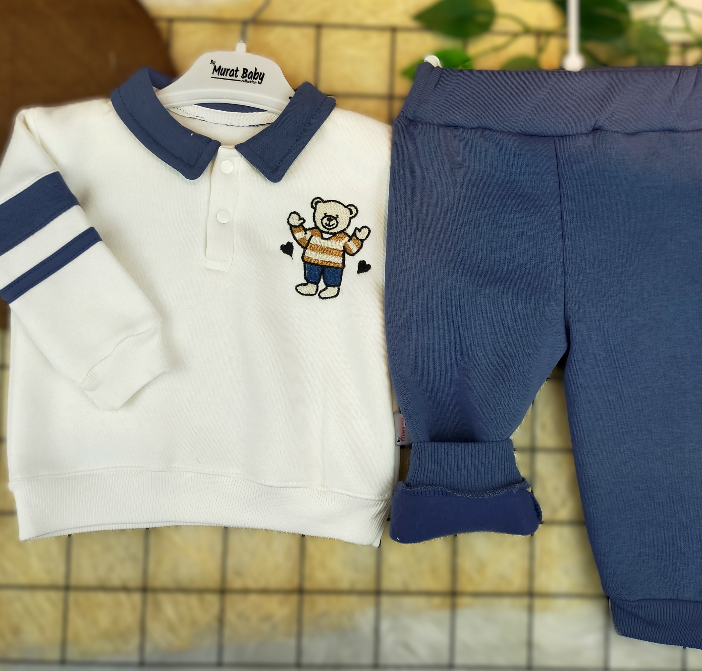 Ayıcık Desenli Üçiplik Şardonlu Kışlık Erkek Bebek Takım