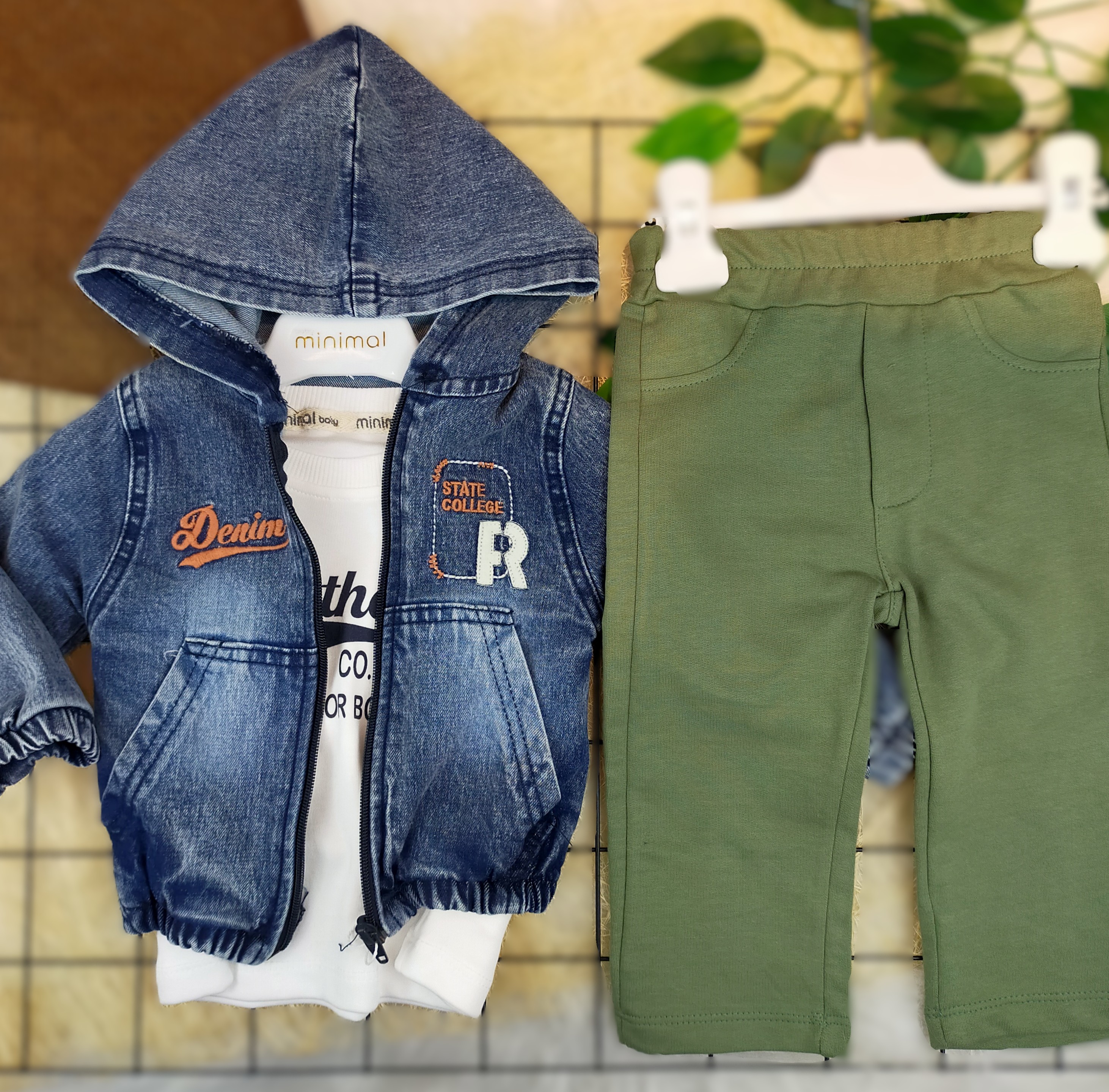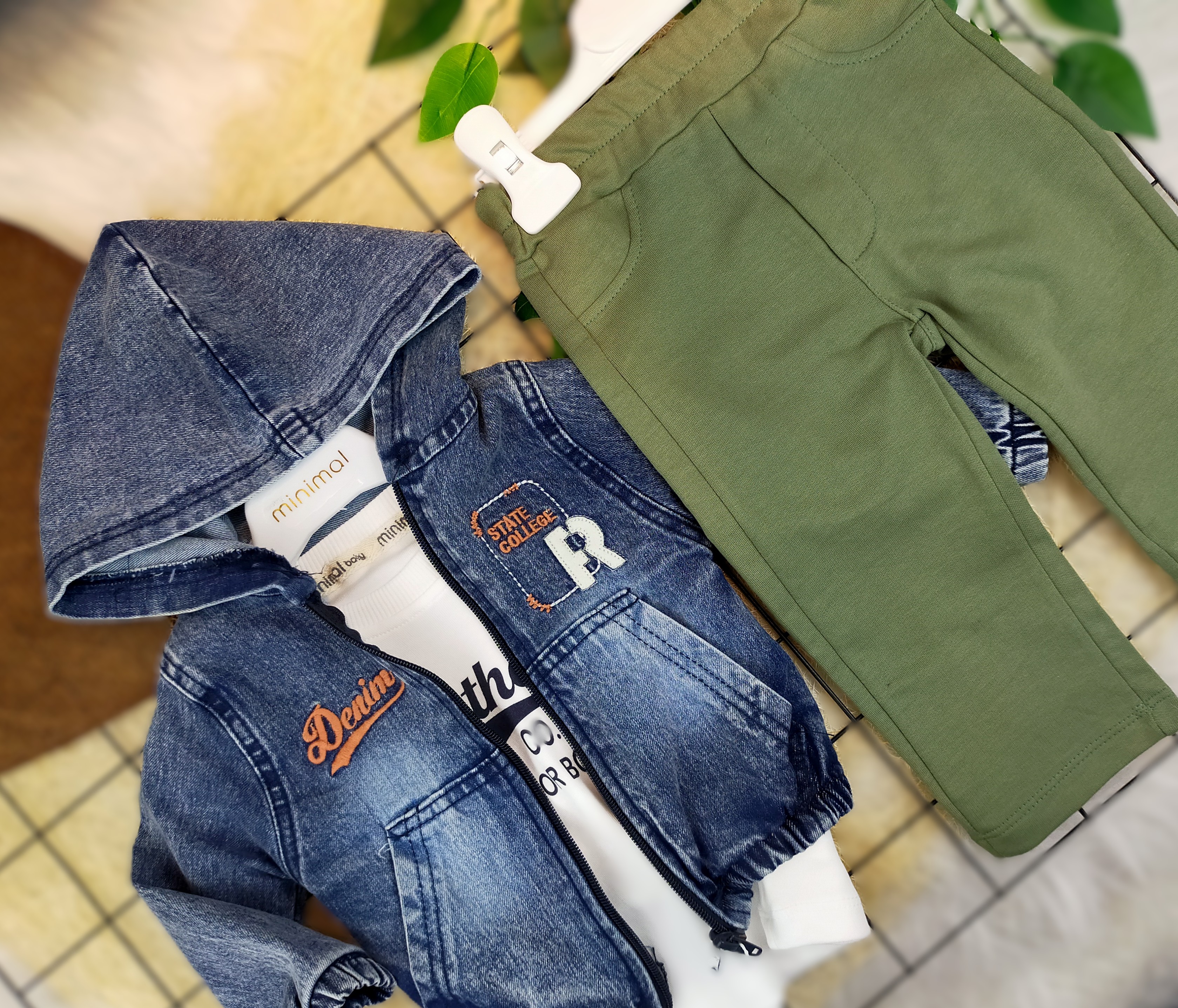 6 ay - 2 yaş arası kapşonlu kot ceket, sweat ve penye eşofmanlı üçlü erkek bebek takımı, hem şıklığı hem de konforu bir arada sunarak bebeğinizin dolabında mutlaka yer alması gereken bir üründür. Kalite, stil ve işlevselliği bir araya getiren bu set, minikler için düşündüğünüz en güzel hediyelerden biri olabilir.