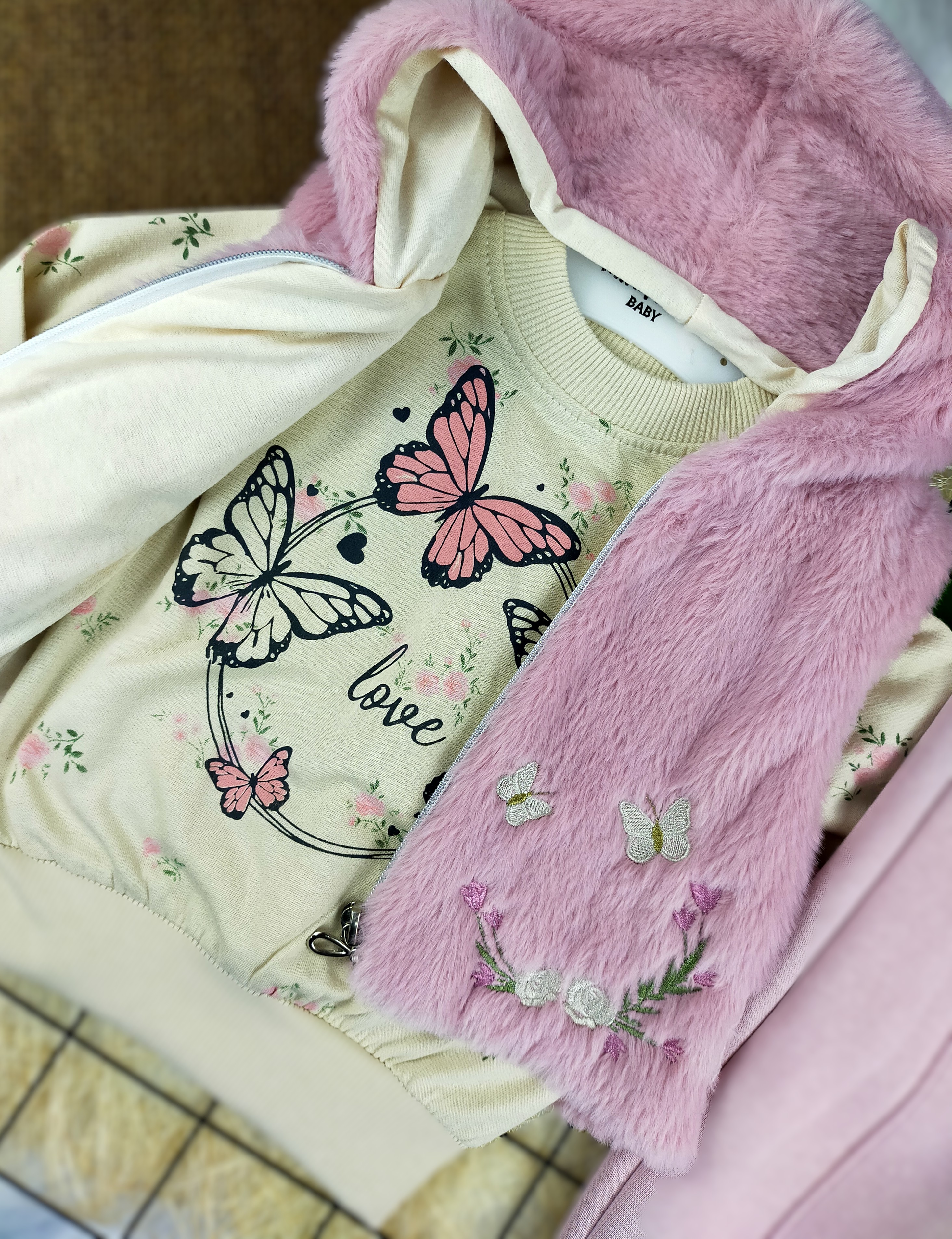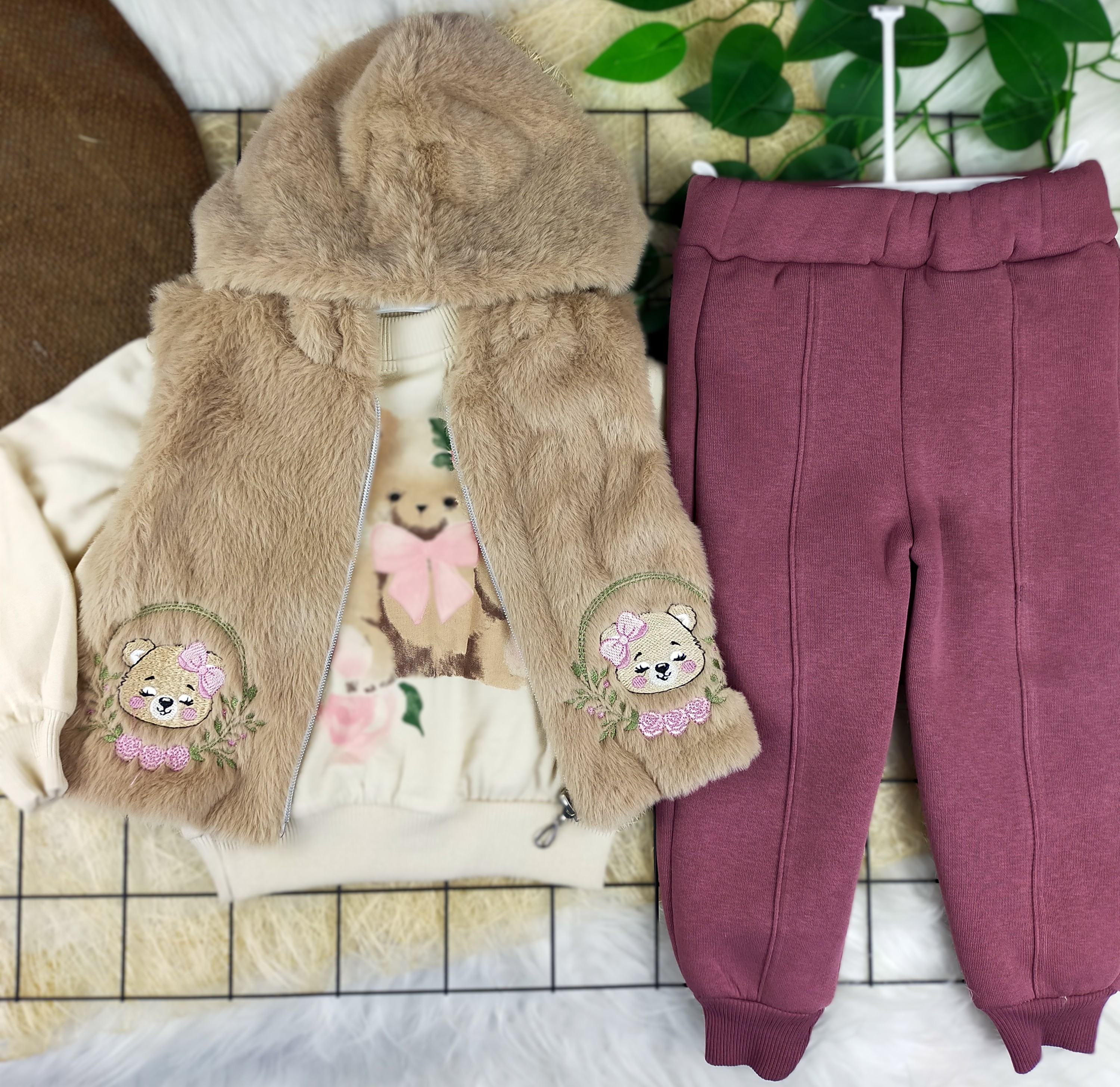 - Yelek: Soğuk havalarda ekstra koruma sağlayan sıcak tutucu bir yelektir. Yumuşak dokusu sayesinde rahat hareket etmelerini sağlar. Yeleğin ön kısmında bulunan nakış detayları, ürüne şık bir görünüm kazandırır.
