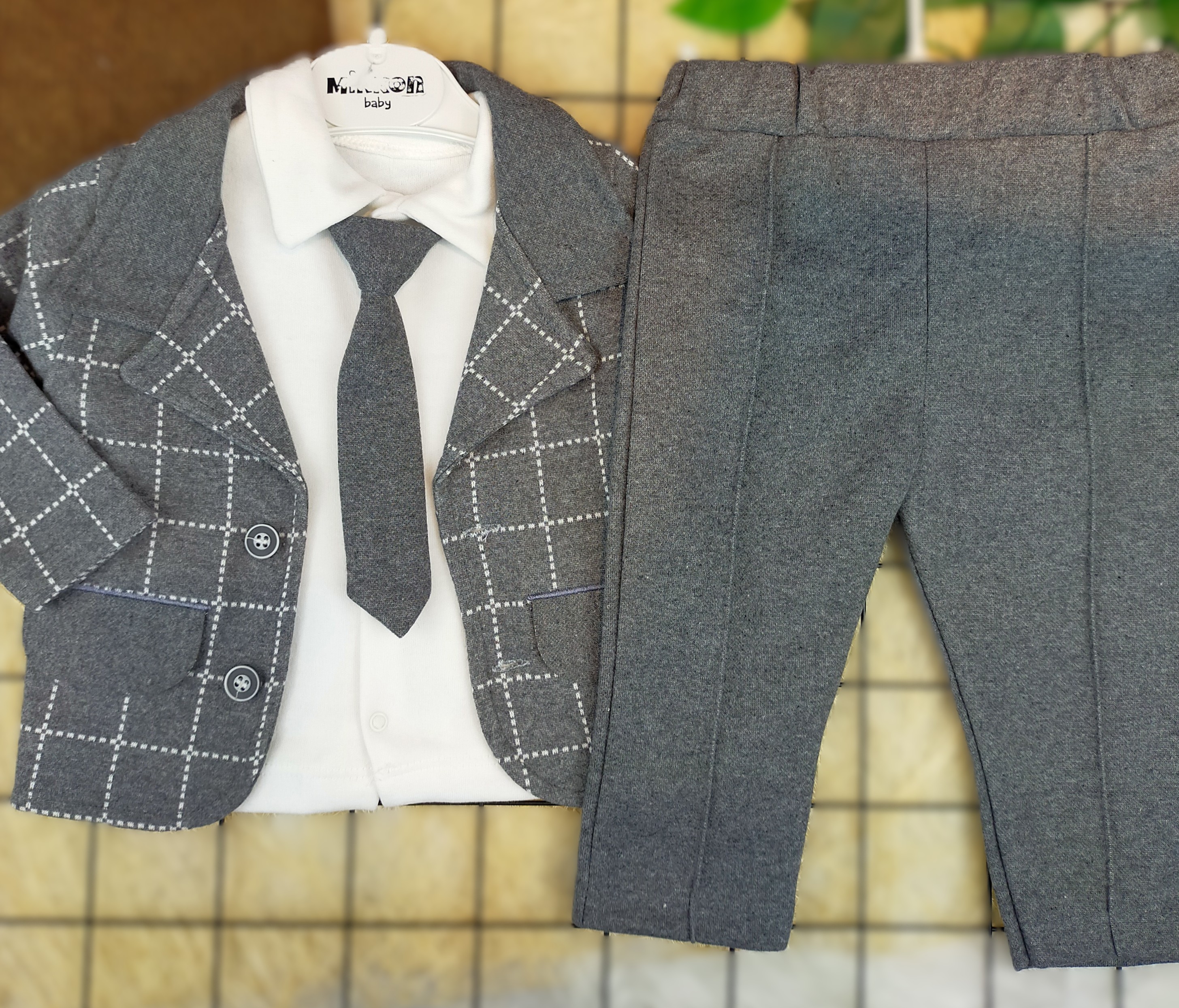Sevimli ve şık bir görünüm arayan ebeveynler için mükemmel bir seçenek olan 6 Ay - 2 Yaş arası penye ceket, gömlek, pantolon ve papyonlu dörtlü erkek bebek takımı, minikleriniz için hem konforu hem de şıklığı bir arada sunuyor. Özel günlerde, doğum günlerinde veya günlük aktivitelerde rahatlıkla tercih edilebilecek bu takım, çocuğunuzun tarzını ve kişiliğini yansıtacaktır.