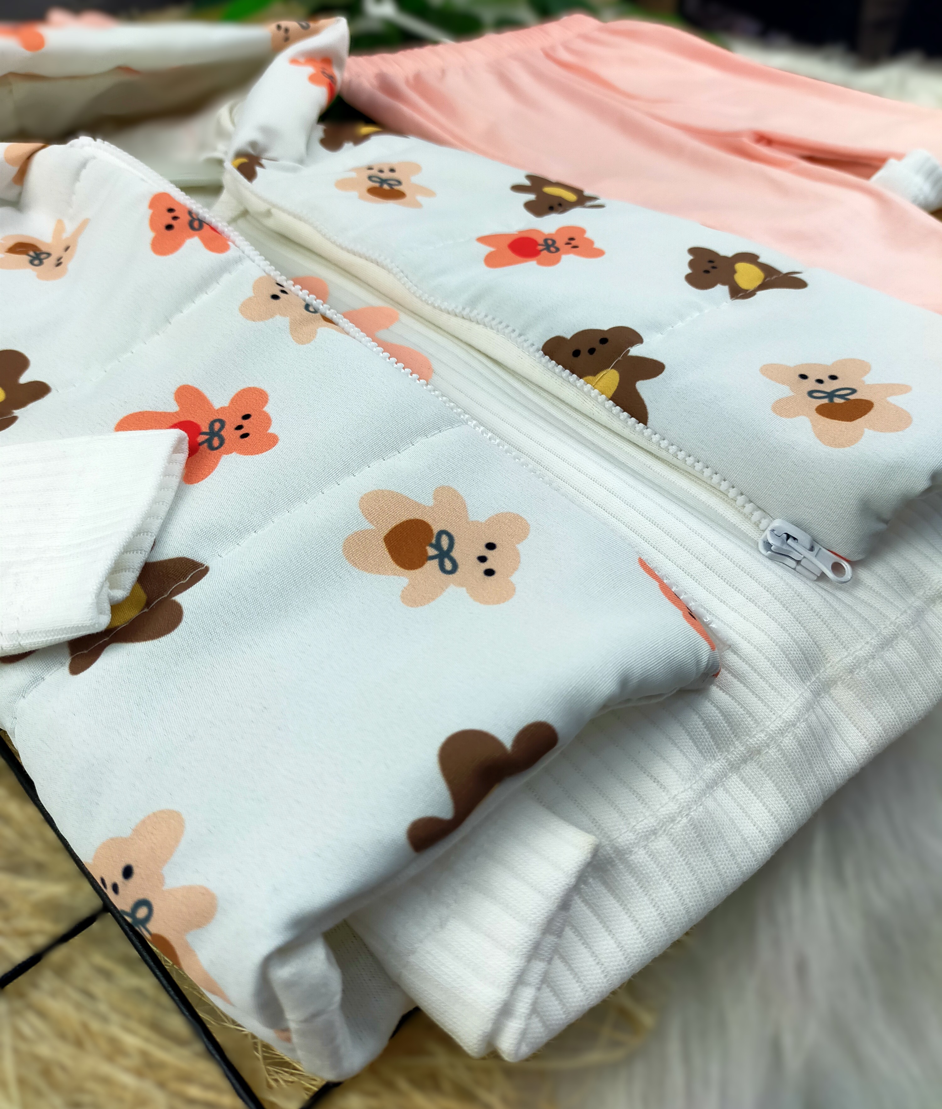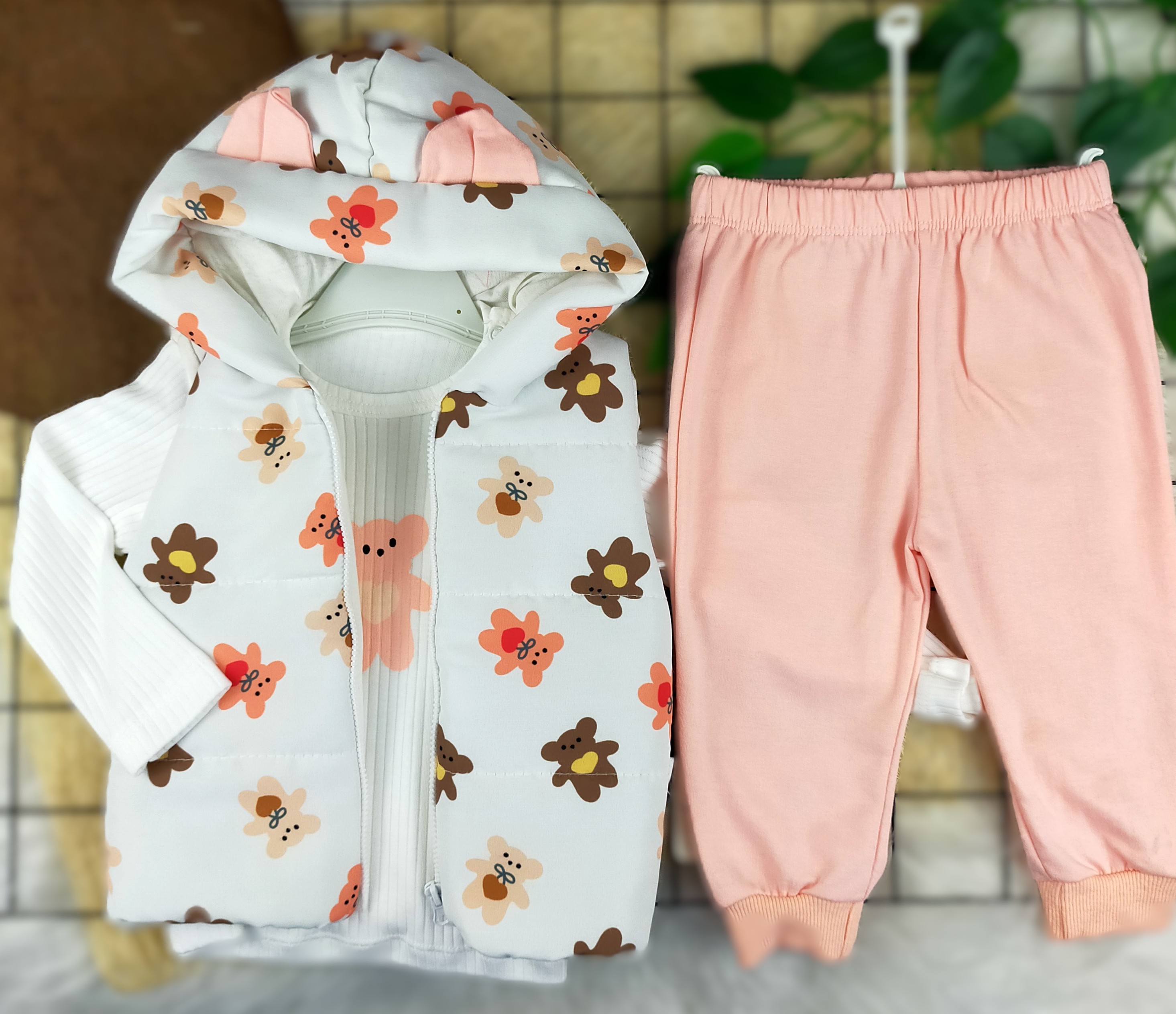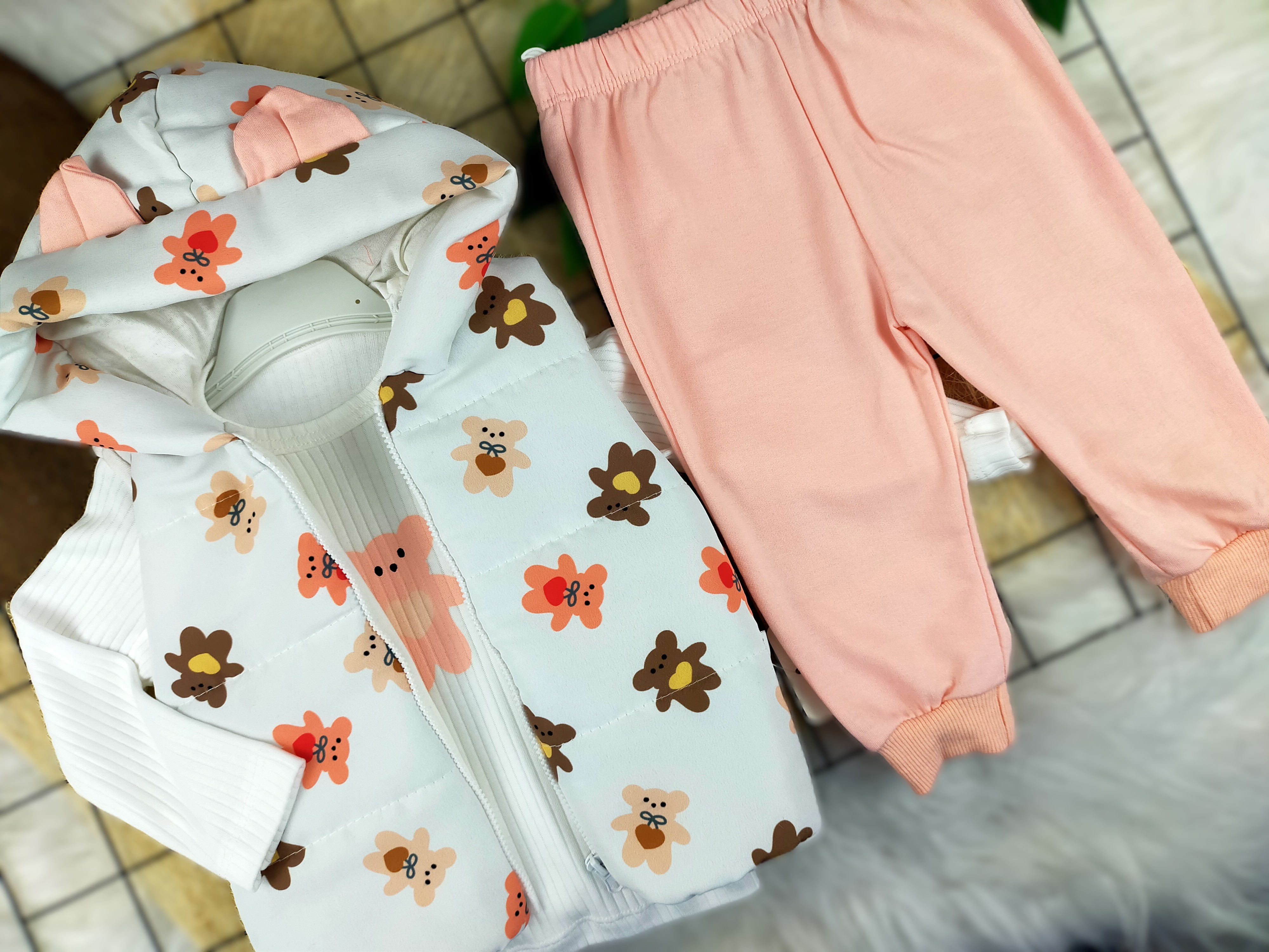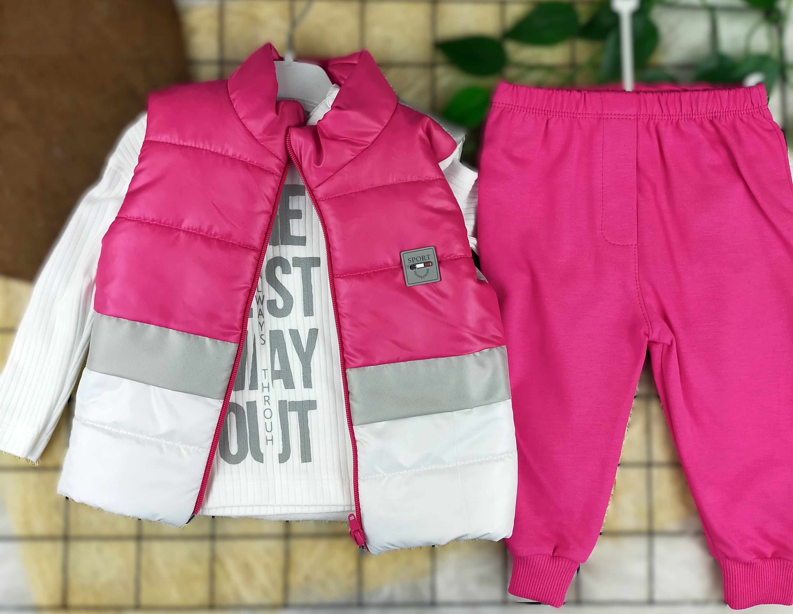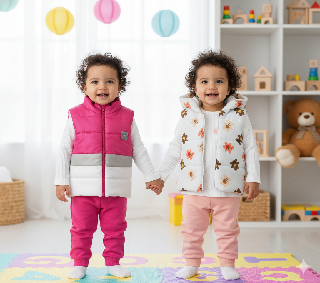 Kız bebekleriniz için özel olarak tasarlanmış, şık ve konforlu 6 ay - 2 yaş arası şişme yelekli üçlü takımlarla karşınıza çıkıyoruz. Kış mevsiminin soğuk günlerinde miniklerinizin hem sıcak kalmasını hem de tarz sahibi görünmesini sağlayacak bu setler, hem işlevselliği hem de estetik duruşu ile dikkat çekiyor.