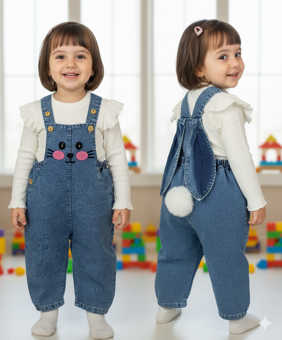 Tavşan Kuyruğu Detaylı Kot Salopet, hem günlük kullanıma hem de özel günlere uygun bir tercihtir. Okul öncesi aktivitelerden parklara kadar her an çocuğunuzun yanında olacak. Günlük giyimde rahatlığıyla ön plana çıkarken, sevimli tasarımıyla da dikkat çekiyor.