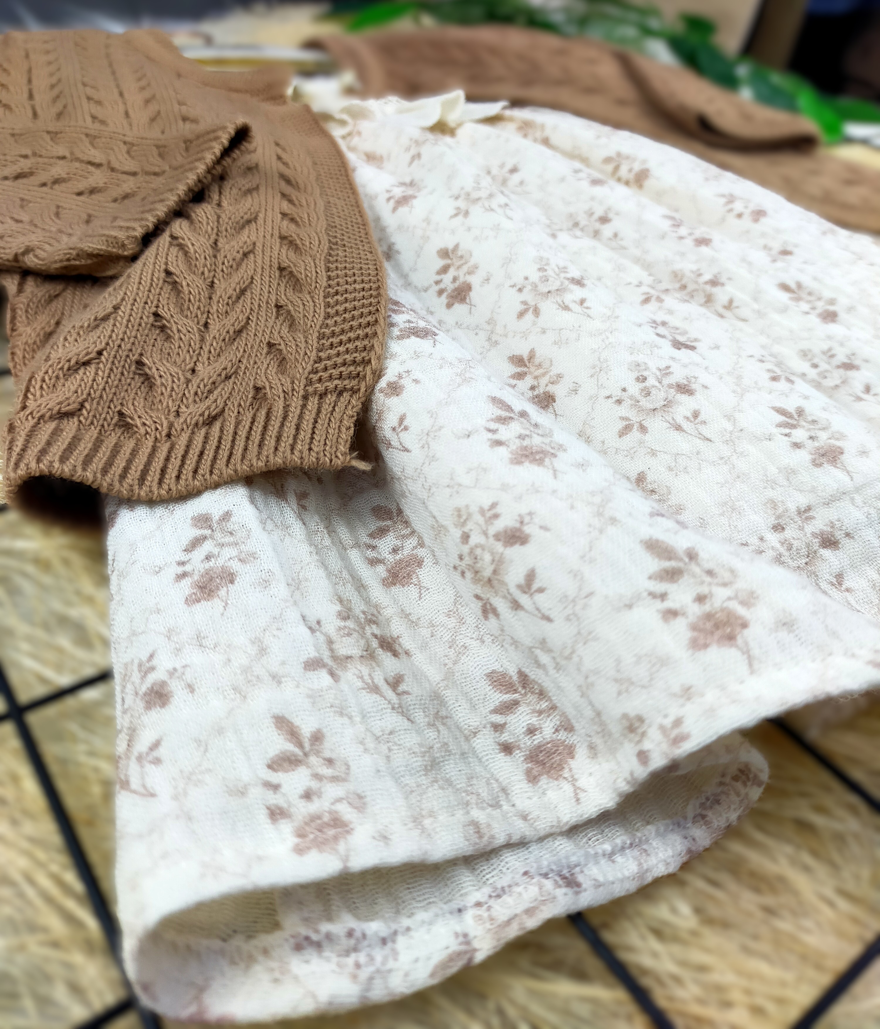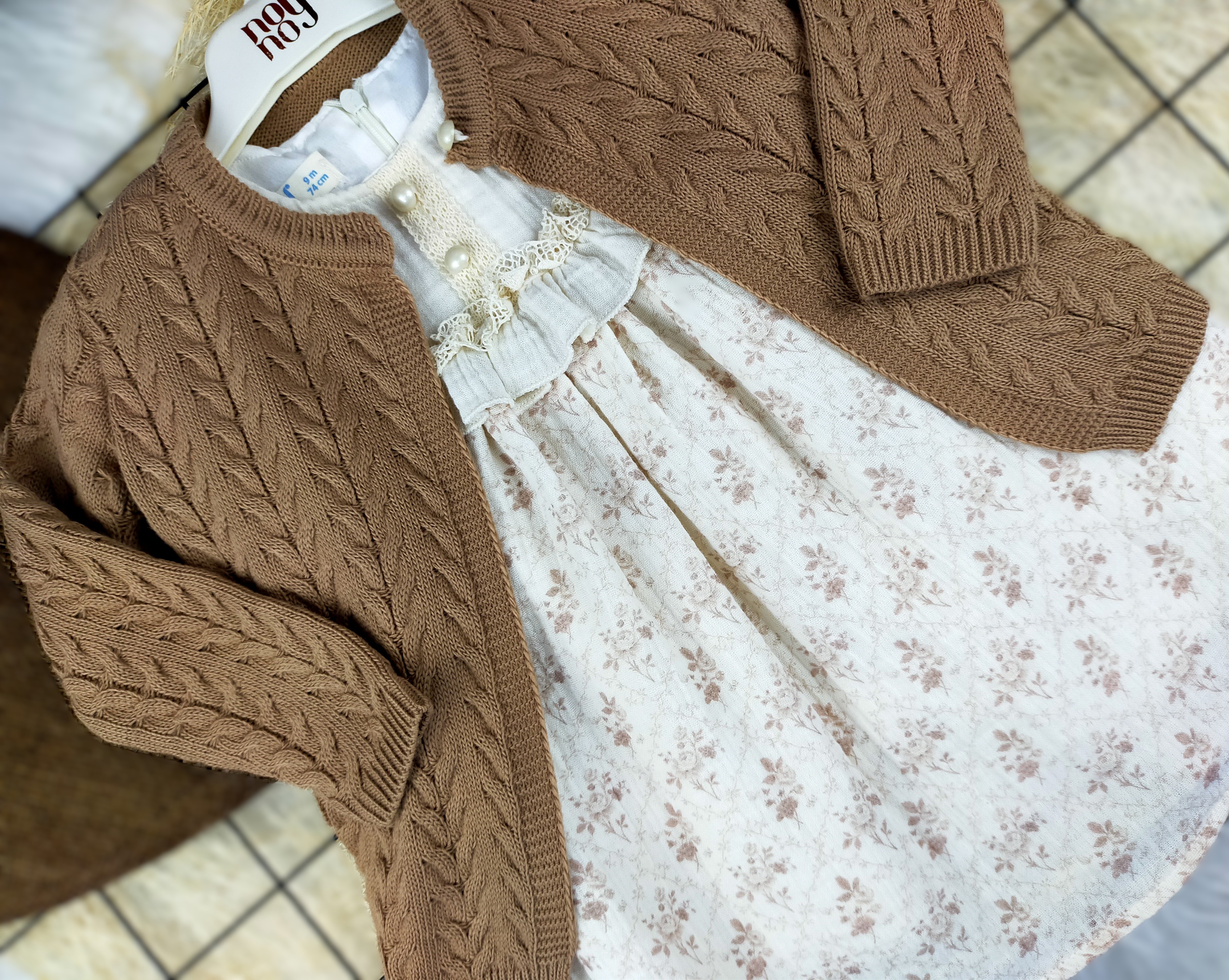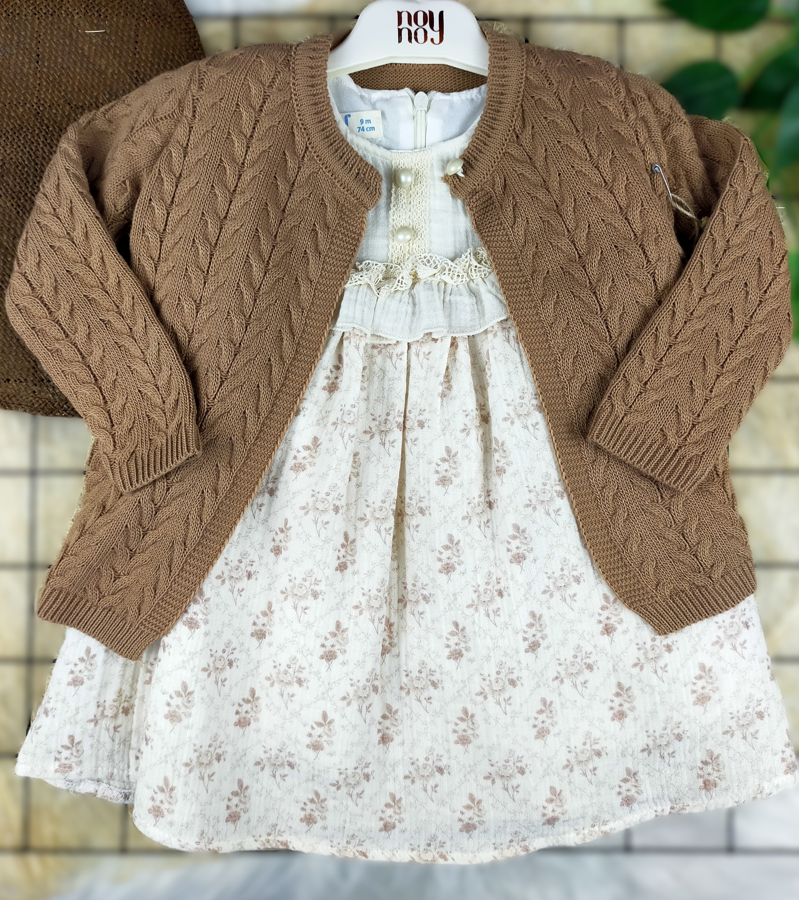 6 Ay - 2 Yaş Arası Triko Hırkalı Müslin Elbise
