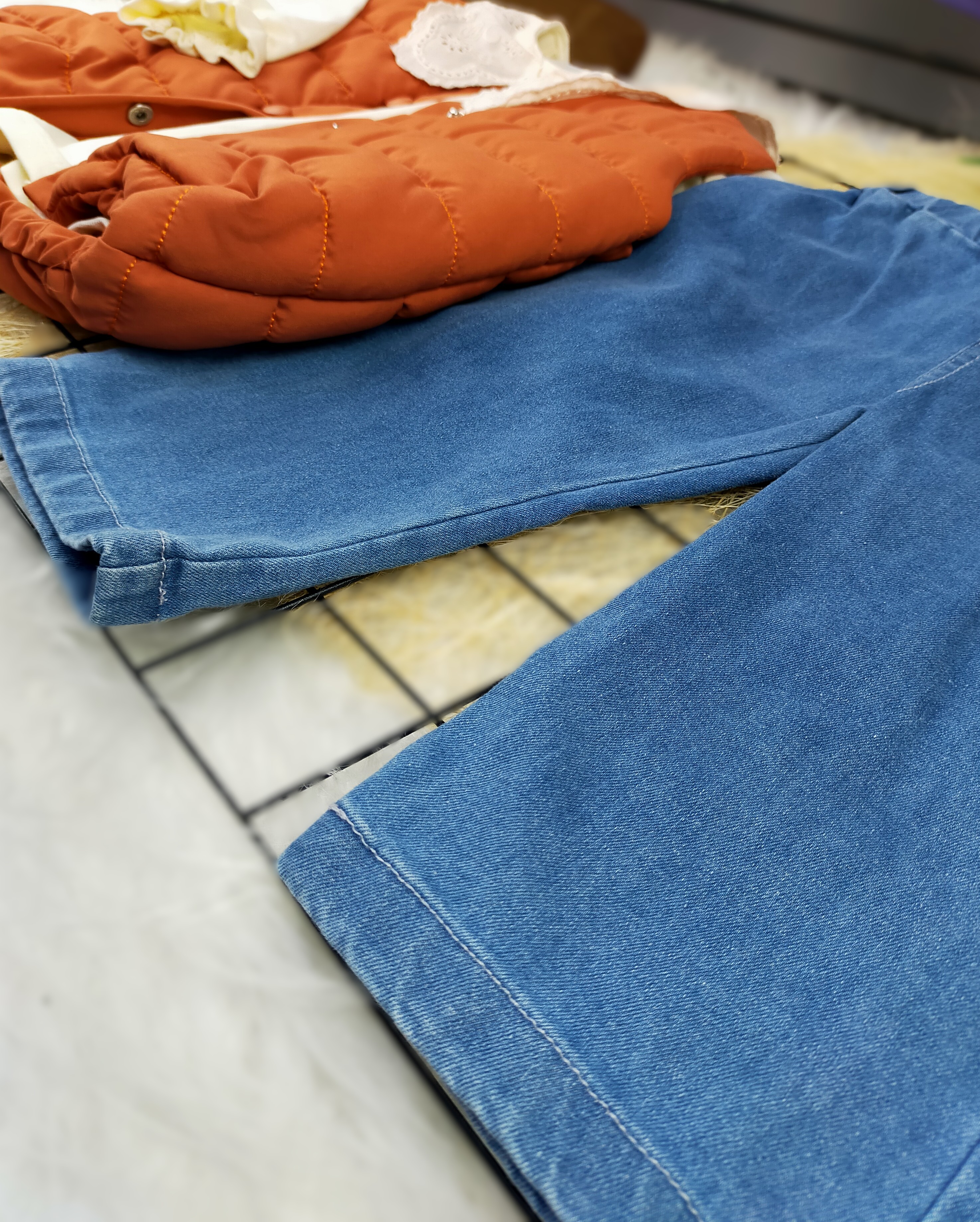 - Bol Paça Kot Pantolon: Modern kesimi ile hem şık hem de işlevsel bir modeldir. Esnek bel bandı sayesinde bebeğinizin konforunu artırırken, rahat bir giyim deneyimi sunar.