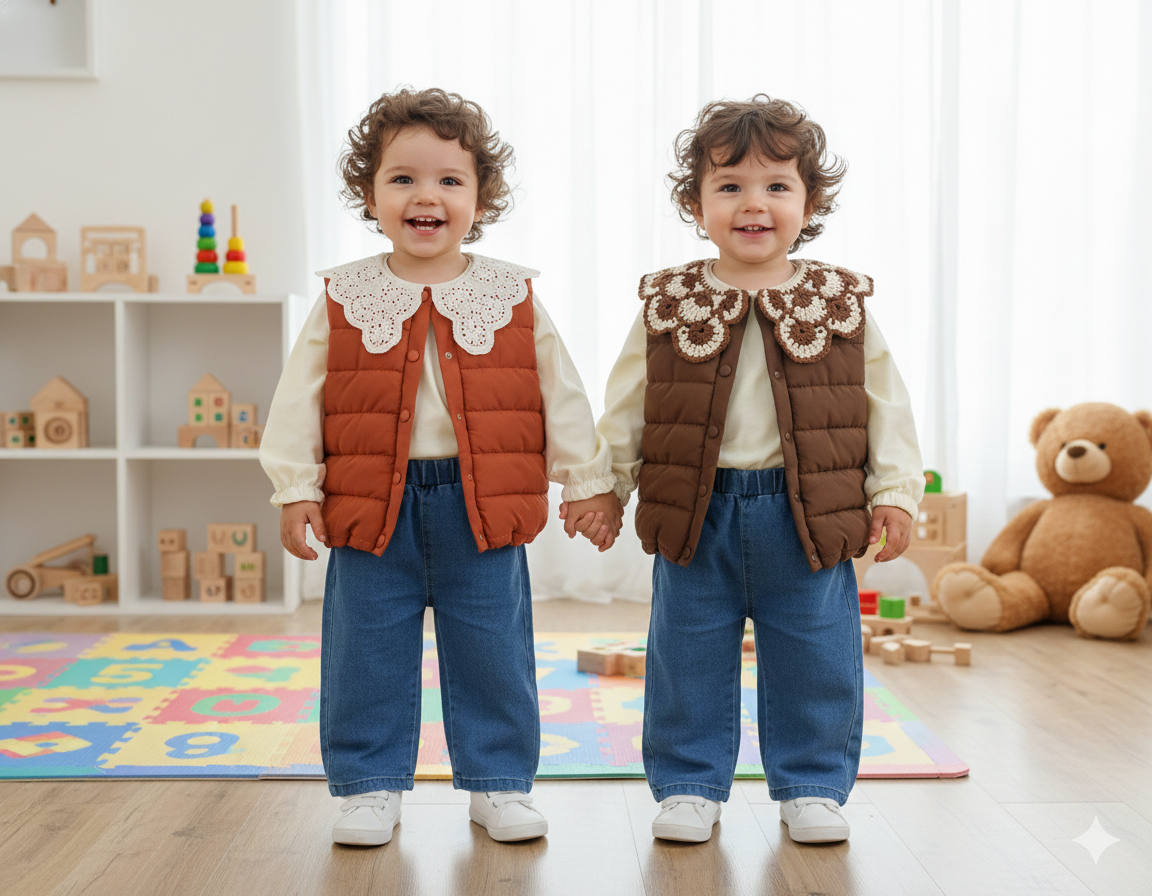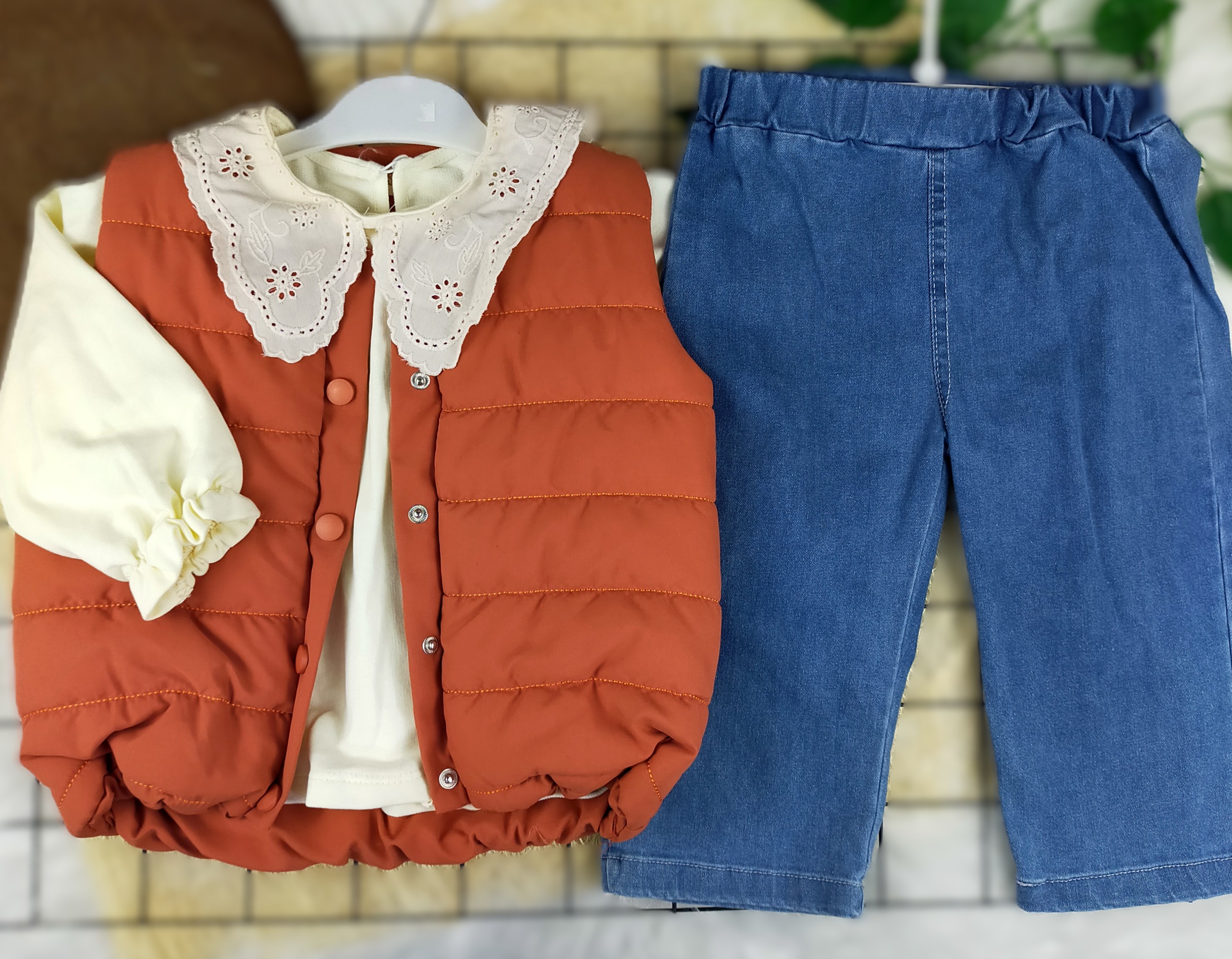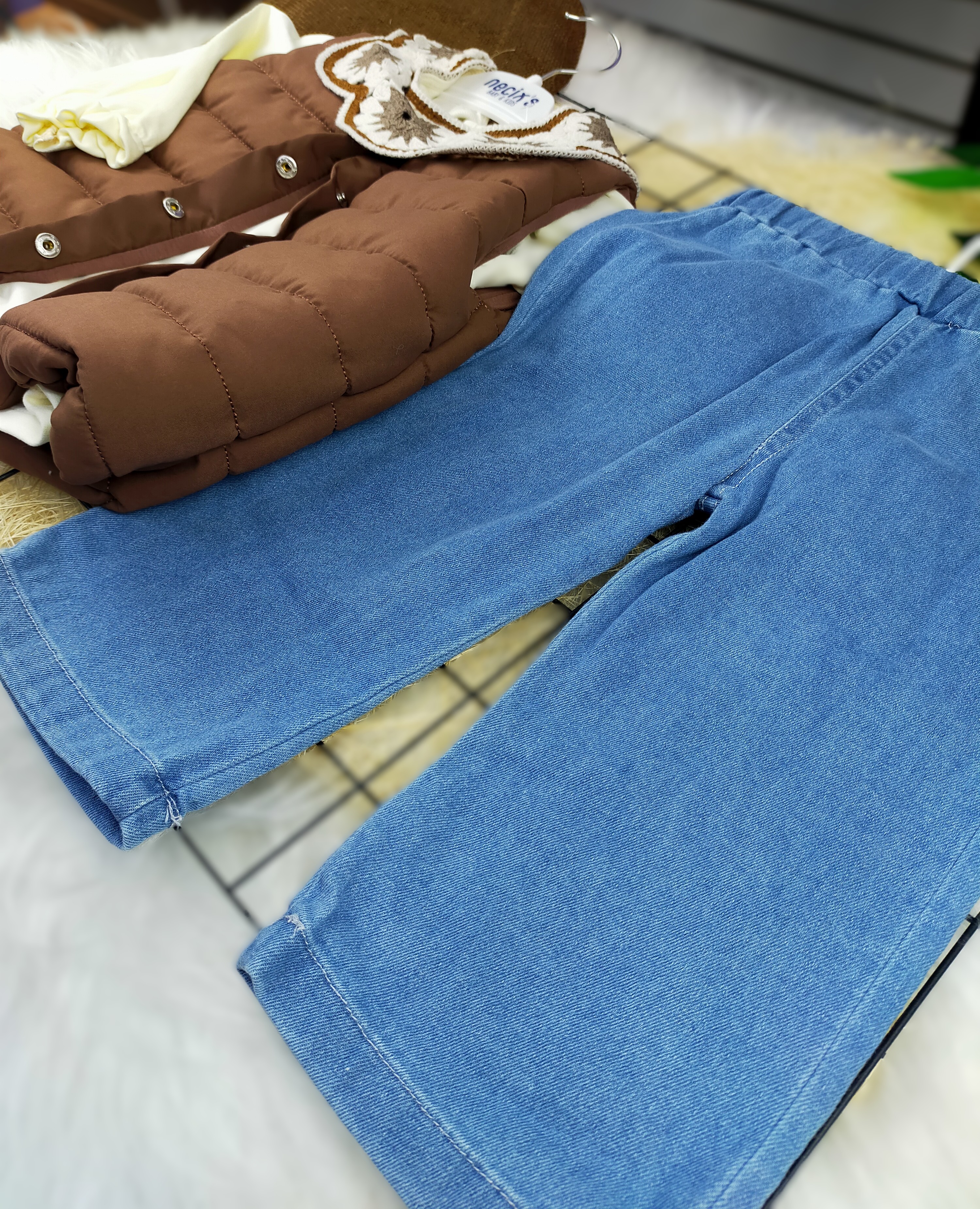 Bu şişme yelek ve kot takımı, hem estetik hem de fonksiyonellik açısından mükemmel bir tercih olacaktır. Çocukların hayatında farklı bir stil yaratmalarına ve aynı zamanda rahat hareket etmelerine olanak tanır. Doğal kumaş yapısı ile hem sağlıklı hem de dayanıklı bir ürün sunarak, ebeveynlerin gönül rahatlığıyla tercih edebileceği bir üründür.